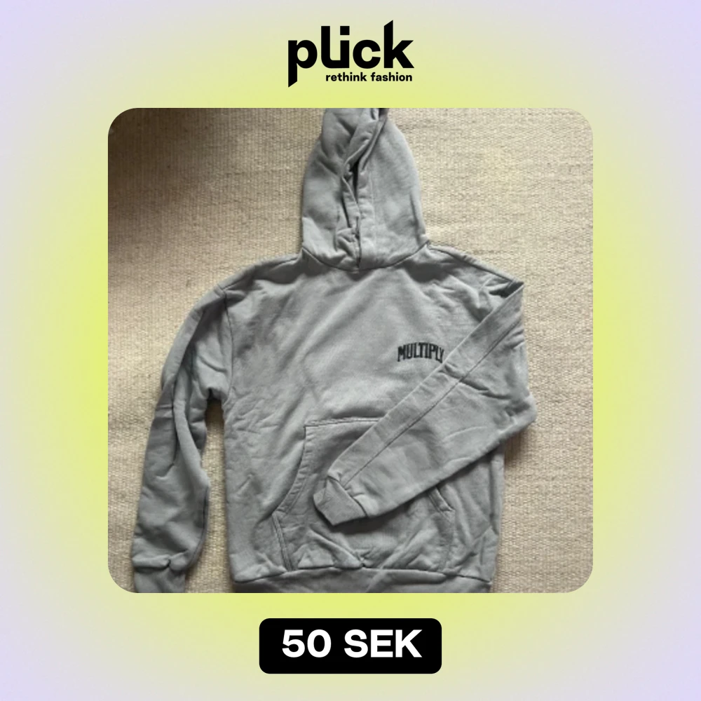 Grå hoodie med tryck fram och bak. Från märket multiply apparel. Använd fåtal gånger så i fint skick, är i strl S💖
