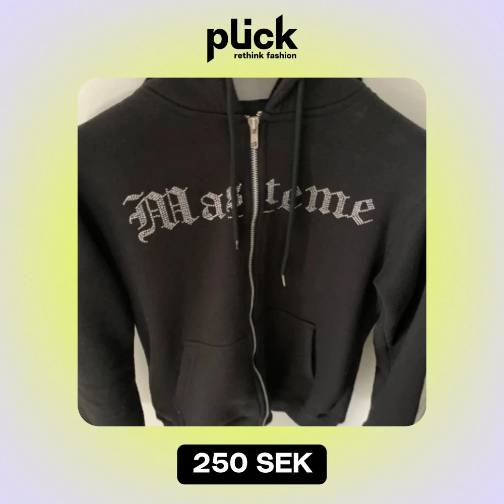 En riktigt snygg rhinestone zip hoodie i skick 7-10. Den är lite luddig men ändå bra skick