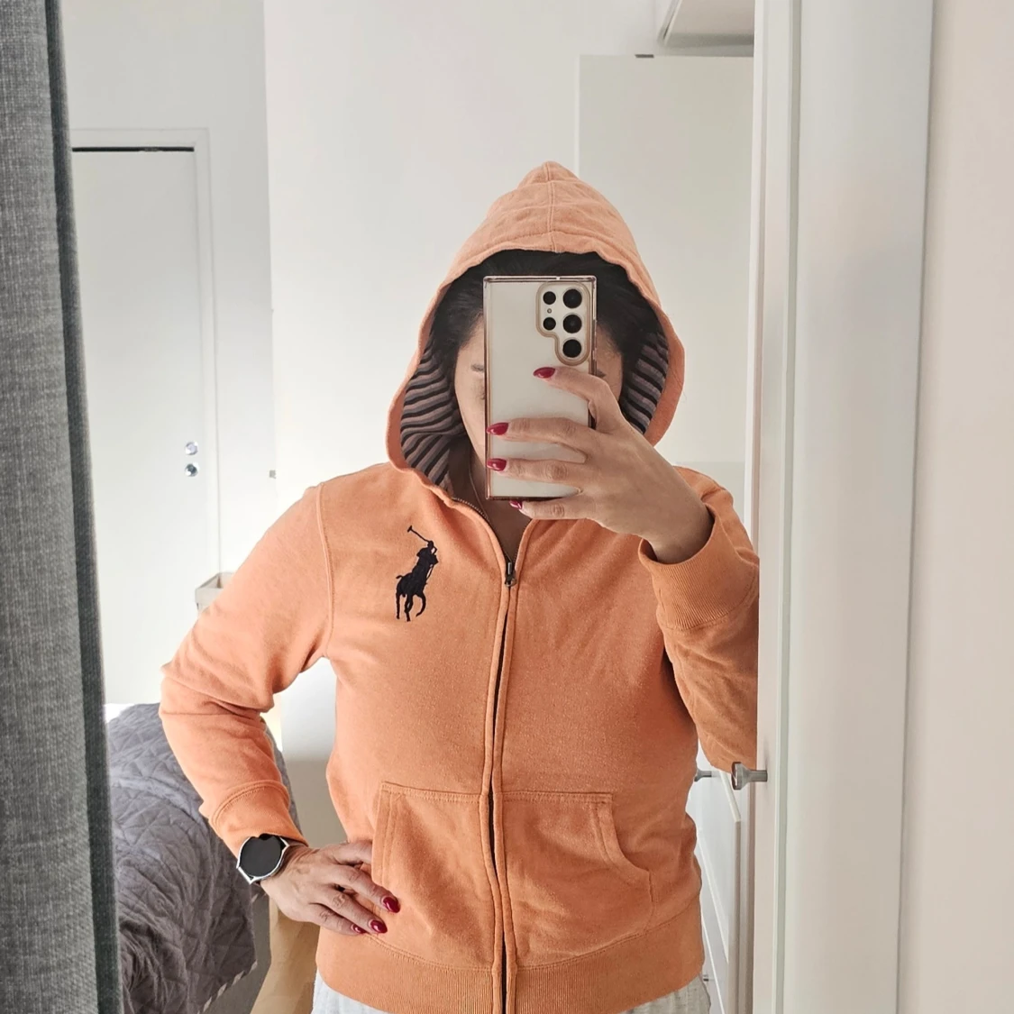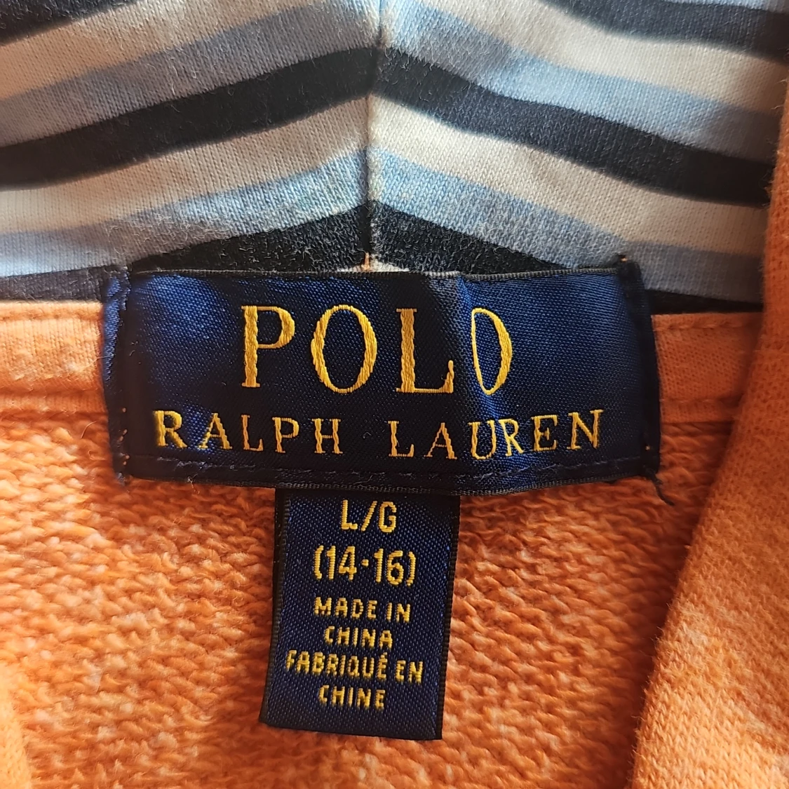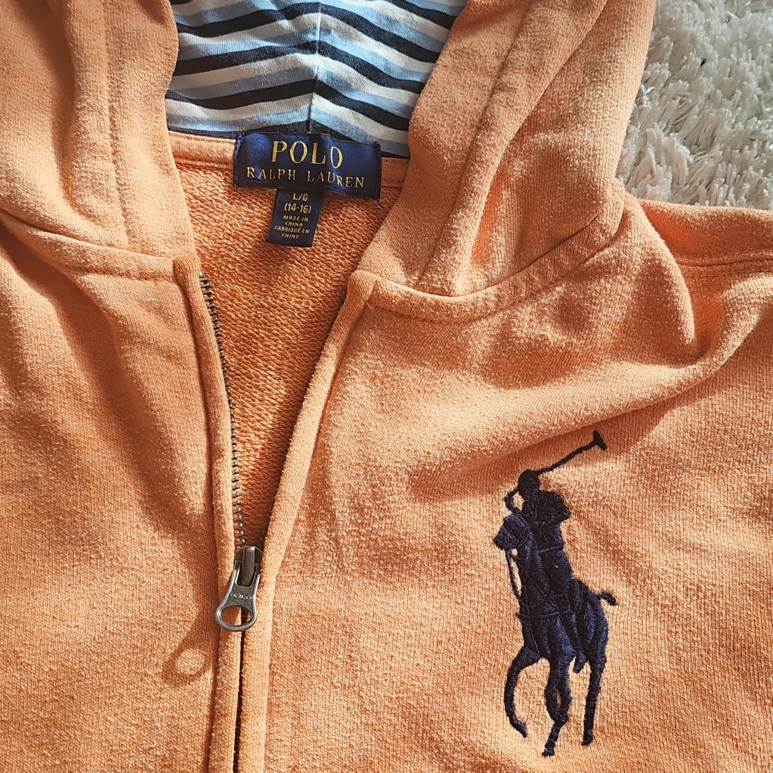 Säljer en snygg orange huvtröja från Ralph Lauren med dragkedja och stor broderad logga på bröstet. Tröjan har en randig insida i huvan och är långärmad. Perfekt för en avslappnad stil. Storlek barn 14-16 år men passar perfekt för vuxna storlek S-M.