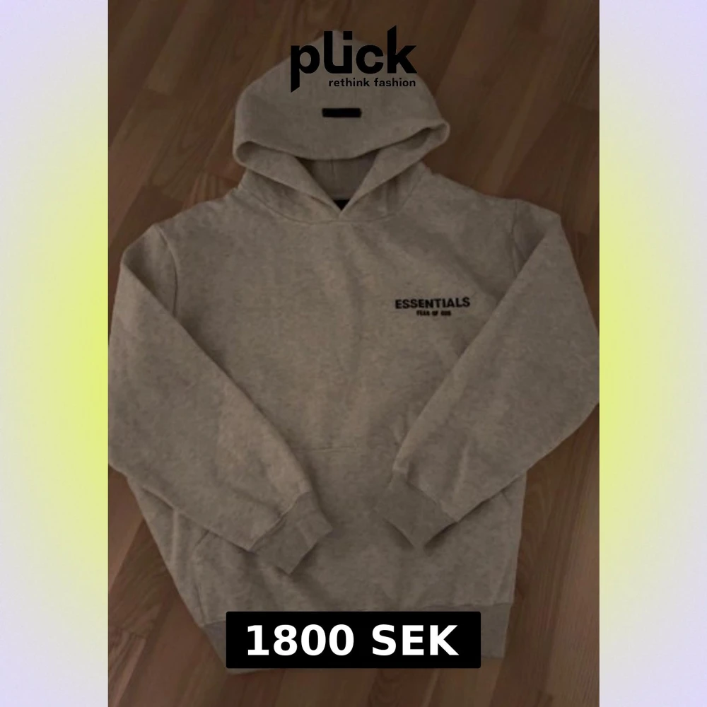 Säljer min grå Essentials hoodie som är i storlek S men den var lite Oversized för mig som har S så den skulle passa folk med storlek M