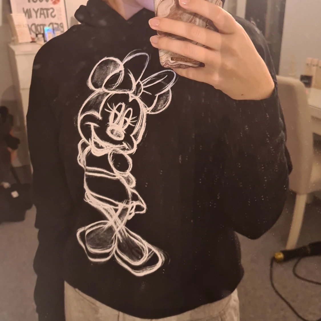 Svart hoodie från Disney med stor vit skissad Minnie Mouse på framsidan. Tröjan har huva och långa ärmar, perfekt för dig som gillar en chill och lekfull stil. Mjuk insida och klassisk passform. Snygg detalj för dig som älskar Disney!