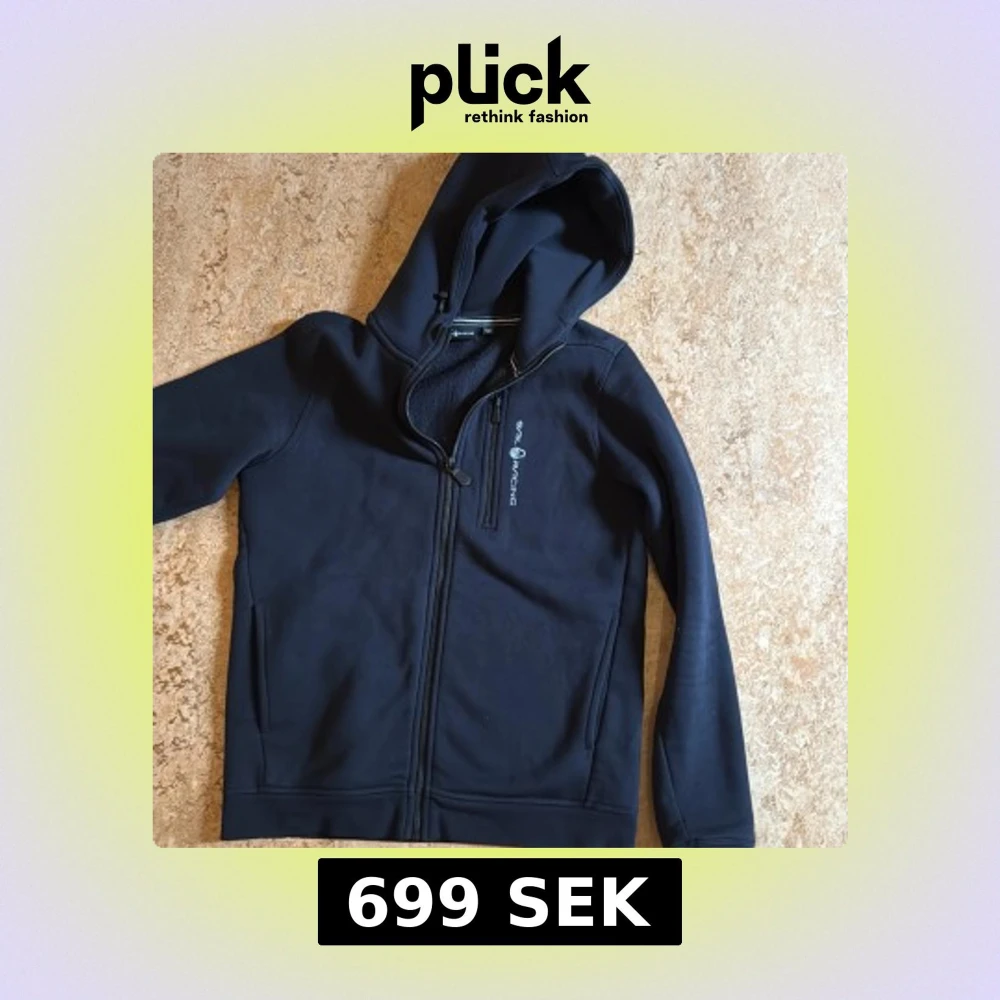 Säljer en svart huvtröja från Sail Racing med dragkedja och en bröstficka. Tröjan har en bekväm huva och långa ärmar, perfekt för kyliga dagar. Den är stilren och enkel att matcha med andra plagg. Passar både för vardag och fritid.
