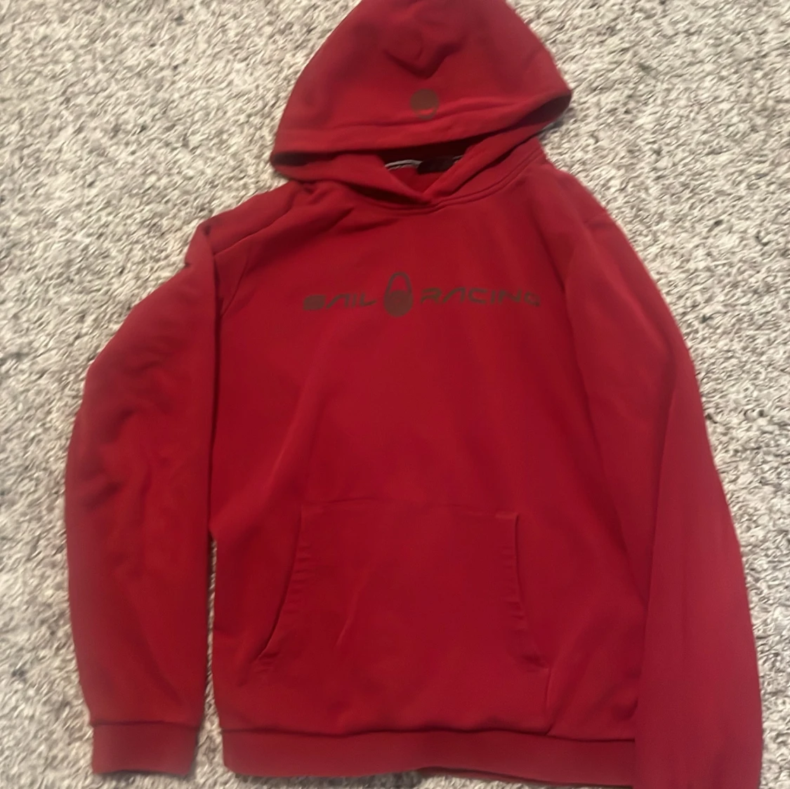 Röd hoodie från Sail Racing med svart logga på bröstet. Klassisk känguruficka framtill och huva. Perfekt för dig som gillar en sportig och avslappnad stil. Mjuk insida och ribbade muddar vid ärmslut och nederkant.