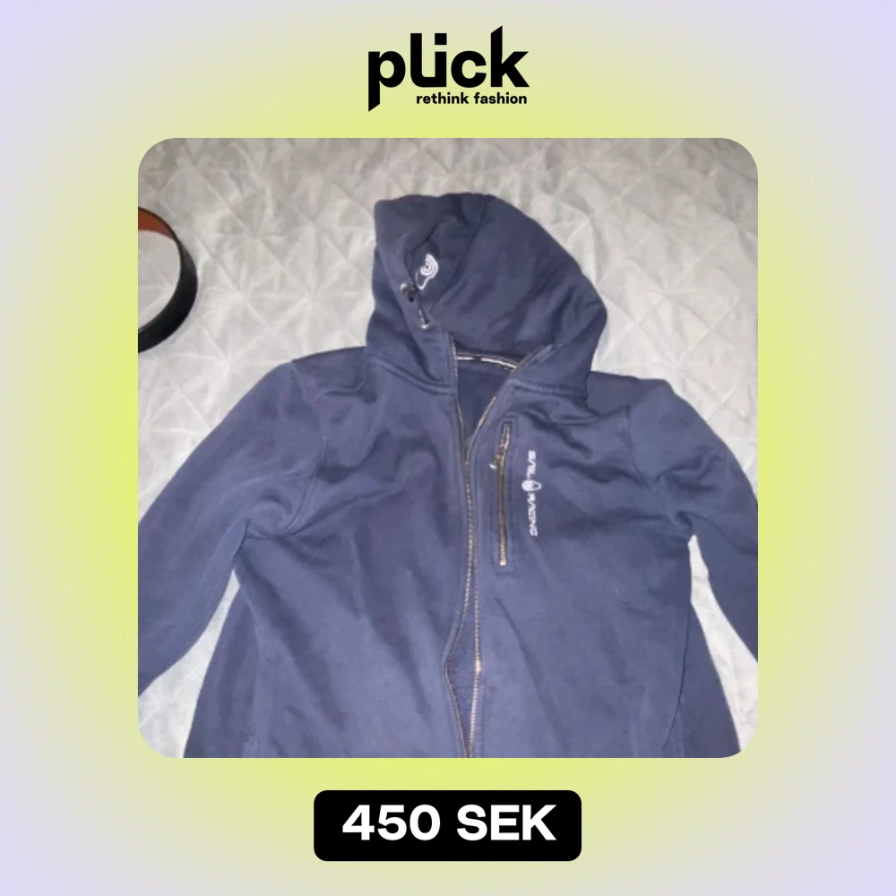 Säljer en mörkblå jacka från Sail Racing. Den har en dragkedja framtill och en huva med logga. Perfekt för kyliga dagar och har en sportig look.