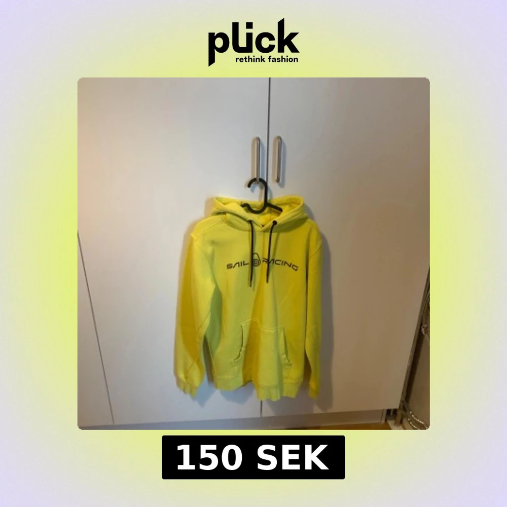Säljer en gul hoodie från Sail Racing med logga på bröstet. Tröjan har magficka och huva, samt en liten broderad detalj på baksidan av huvan. Perfekt för dig som gillar färg!