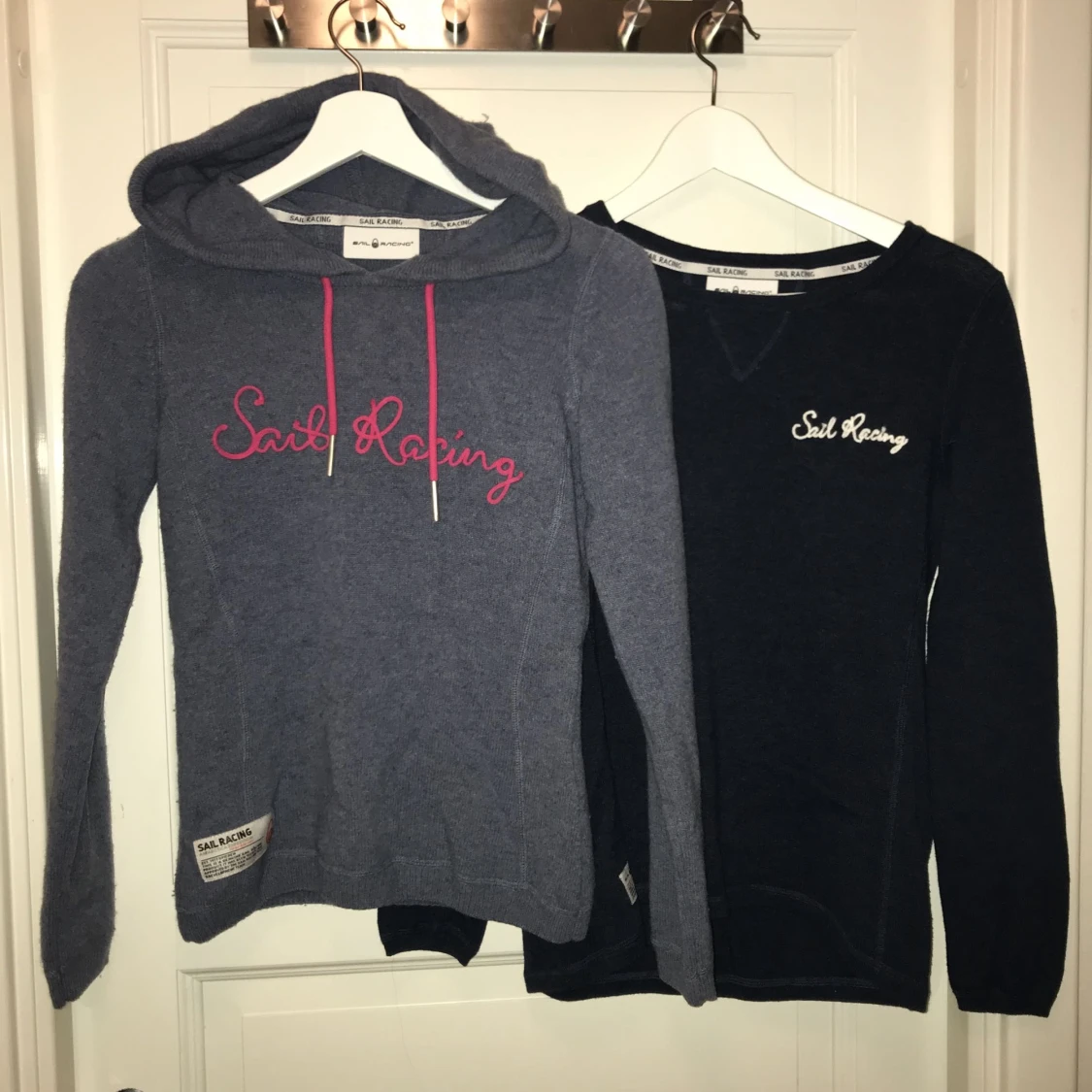 Säljer två Sail racing tröjor, en hoodie och en vanligt tröja. Mörkblå och grå rosa. Väldigt fina och sköna att ha funkar till alla årstider. Nypris ca 1500kr tillsammans