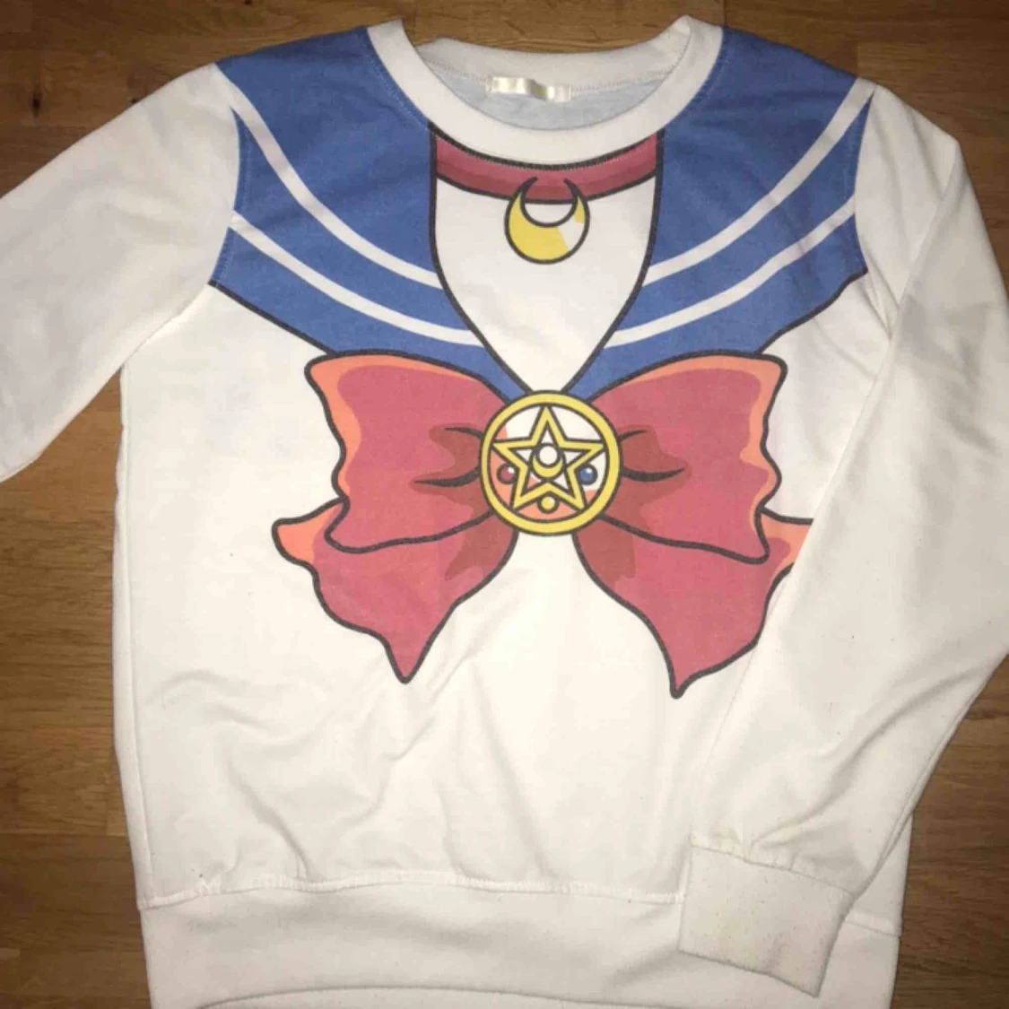sailor moon sweatshirt, köpt på kawaii.se. storlek L men har mycket mindre passform och passar mig som har s. mjukt material, gott skick. köpt för 300, därav priset