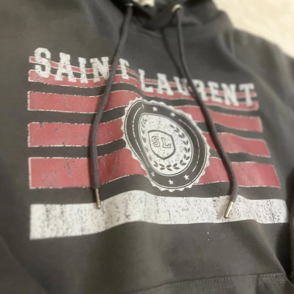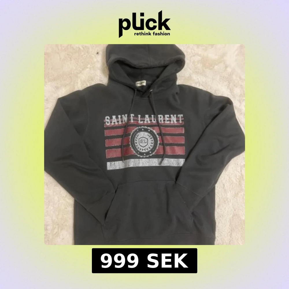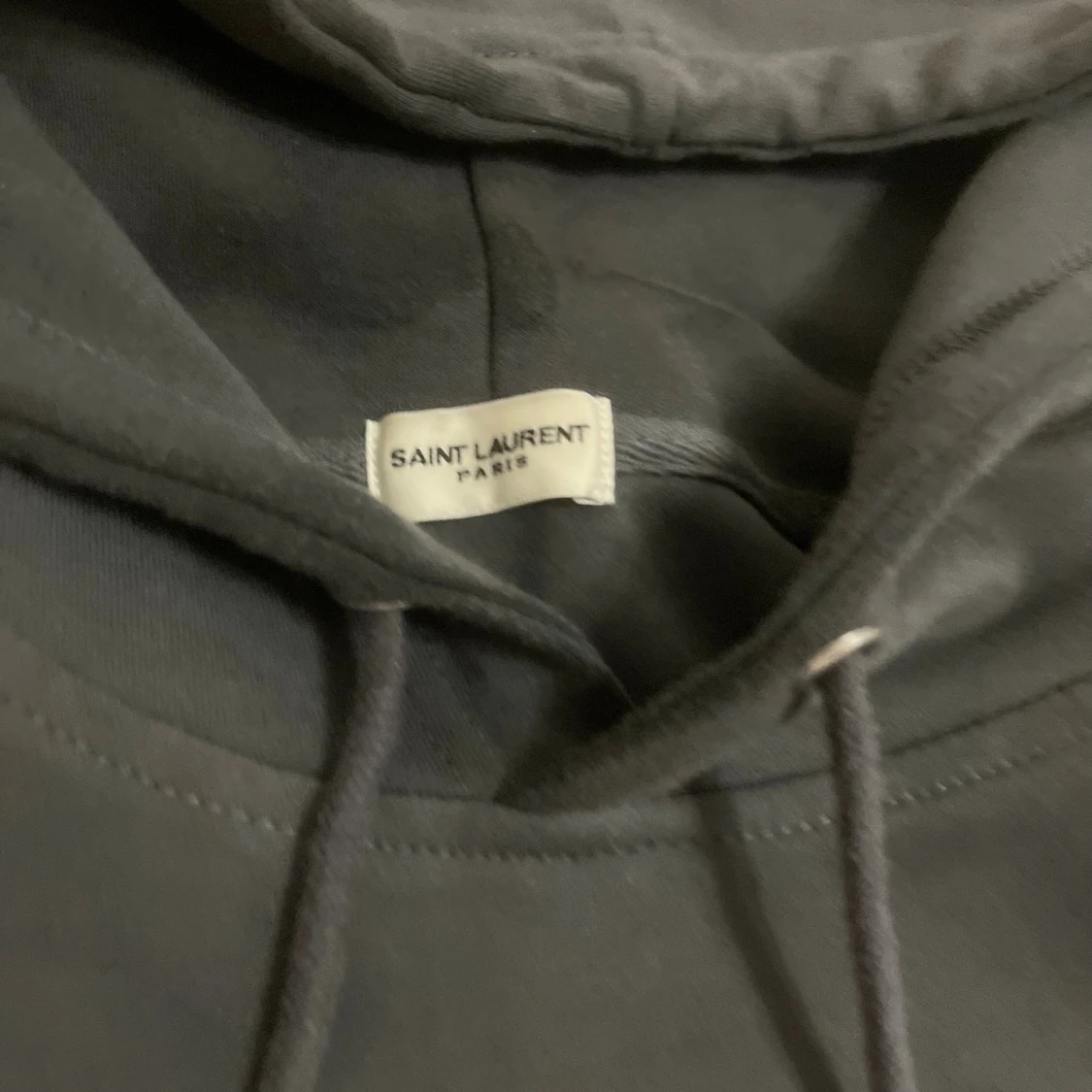 Snygg svart Saint Laurent-hoodie med vintage-inspirerat tryck fram. Skön passform och exklusiv känsla — klassisk men ändå street. Använd få gånger, i mycket bra skick.