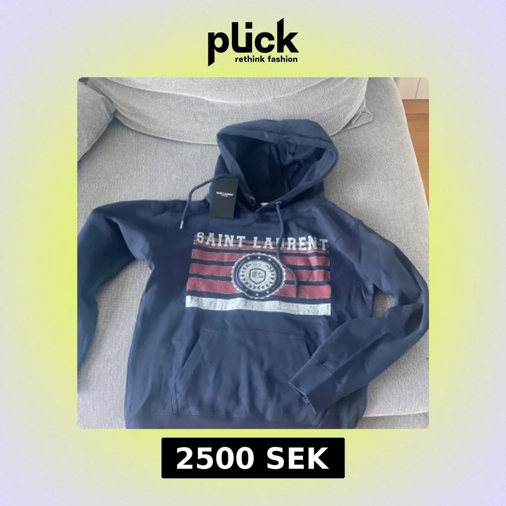 Säljer min mörkblåa saint Laurent hoodie med tryck på framsidan. Detta är en väldigt unik modell som får dig att sticka ut i mängden! Hör av dig vid minsta fundering, pris kan diskuteras🤩💫