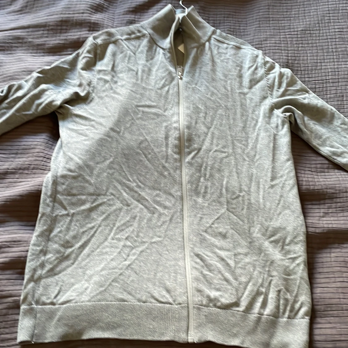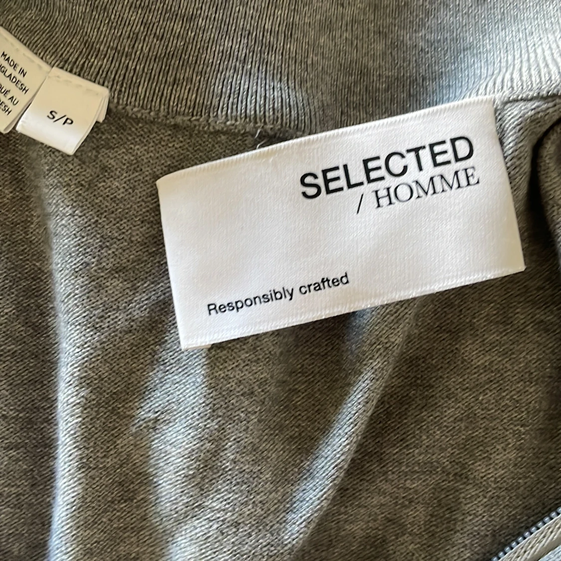 Säljer en ljusgrå fullzip från selected homme. Den är i storlek S och bra skick förutom ett hål som ni kan se på bild 3 som dock inte syns när man använder den. Hör av er vid frågor