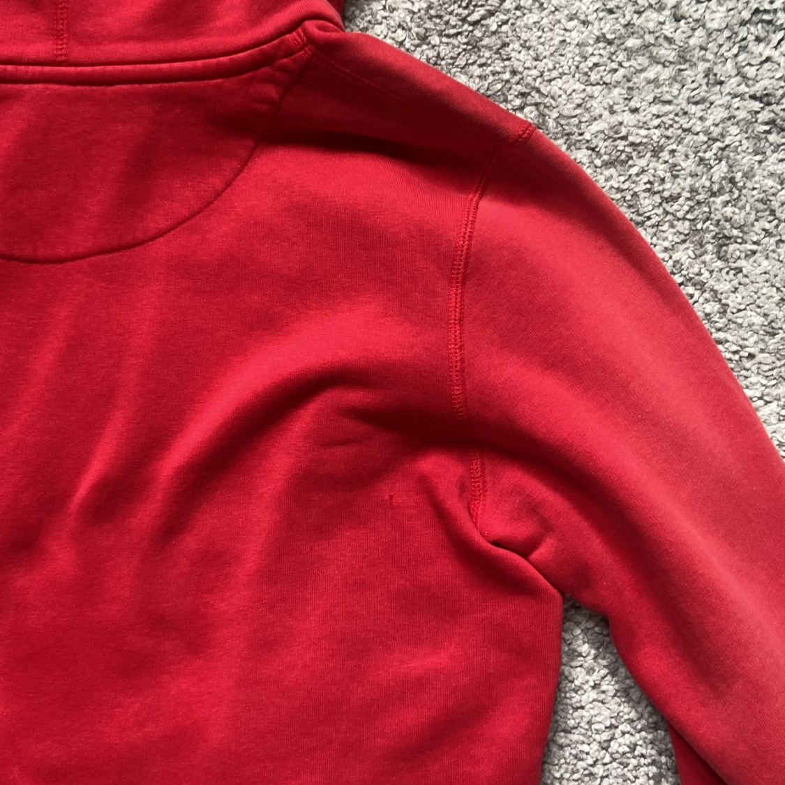 så snygg, men använd av mig ca 3 ggr pga ingen zip. finns ett litet hål under höger Axel (se bild 3). Lite oversized, jag brukar ha S.