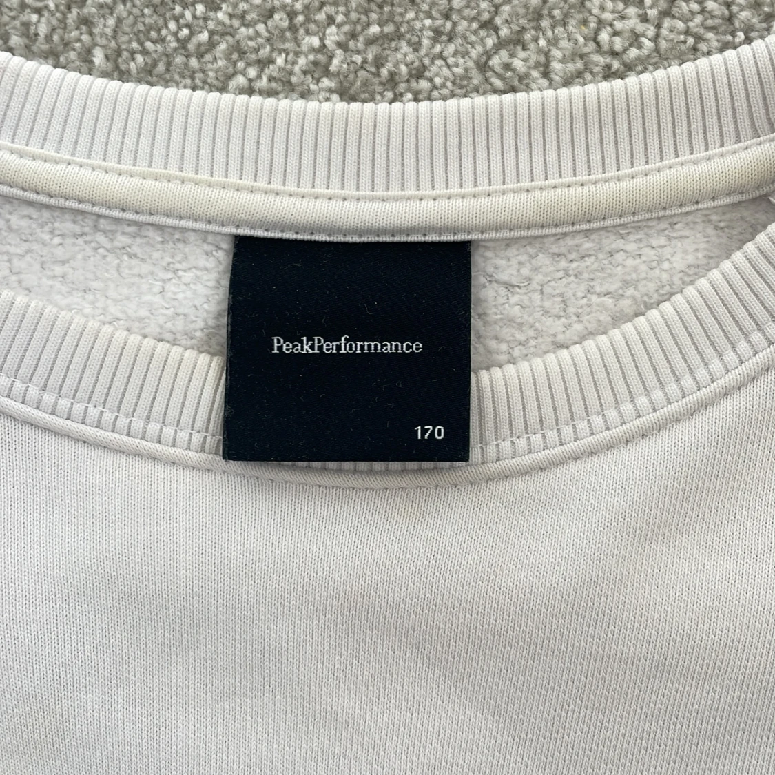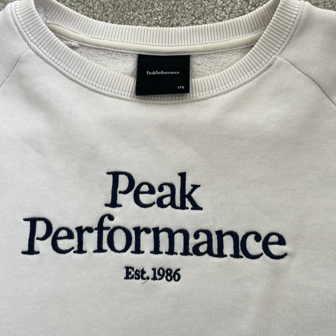 Vit peak sweatshirt. I mycket bra skick och använd fåtal gånger. Köptes på Kids Brandstore för 900kr . Storlek 170 Kontakta vid intresse ☀️350+frakt .