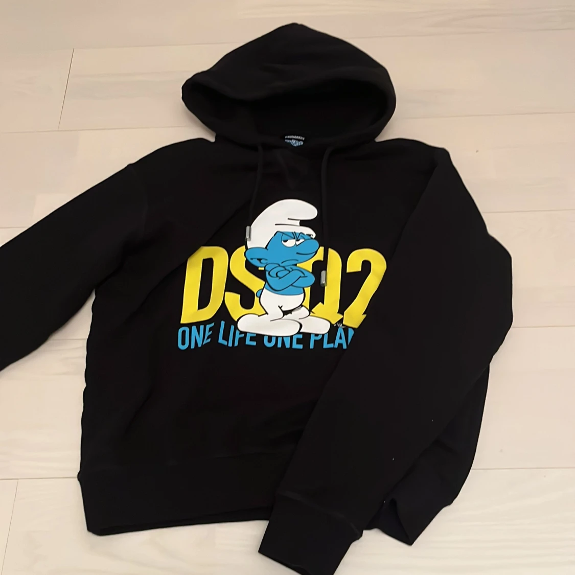 Hej säljer en jättefin helt ny dsquared x smurfs hoodie som är sjukt cool i designen den är självklart äkta och kvitto finns så de bara skriva om ni vill ha bild nypris på denna är 6000kr