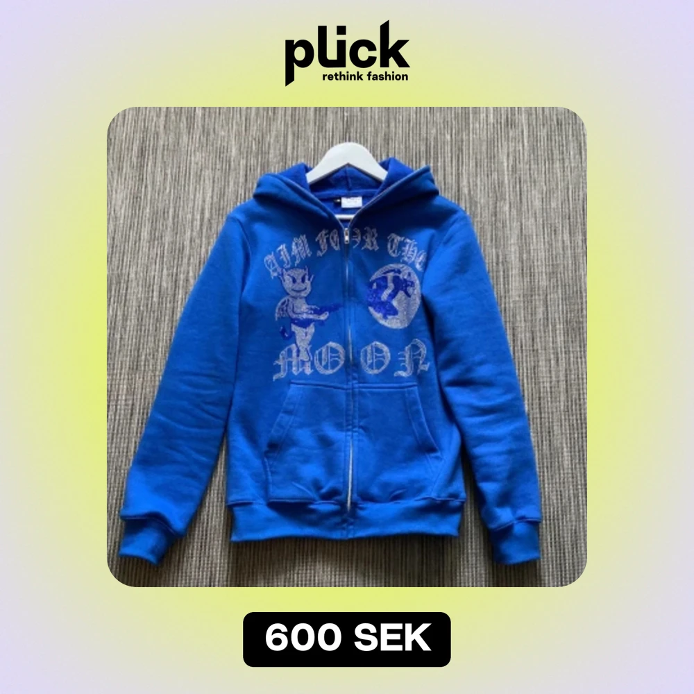 Säljer en snygg rhinestone full zip ifrån Aim for the moon. Endast använd 2 - 3 gånger och skicket är 10/10! Köpt för 1000kr ungefär men säljer för 600kr. Storlek S