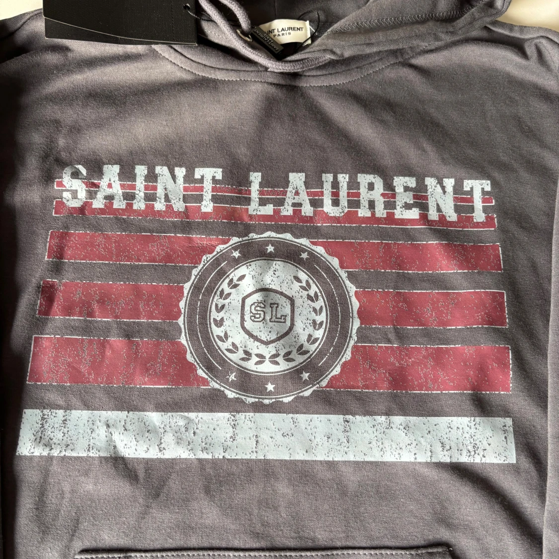 Säljer en helt ny Saint Laurent hoodie, Aldirg andvänd. Står storlek M men sitter mycket mer Som S. Så rekommenderar att köpa om du normalt har storlek S. Priset är ej hugget är Sten.