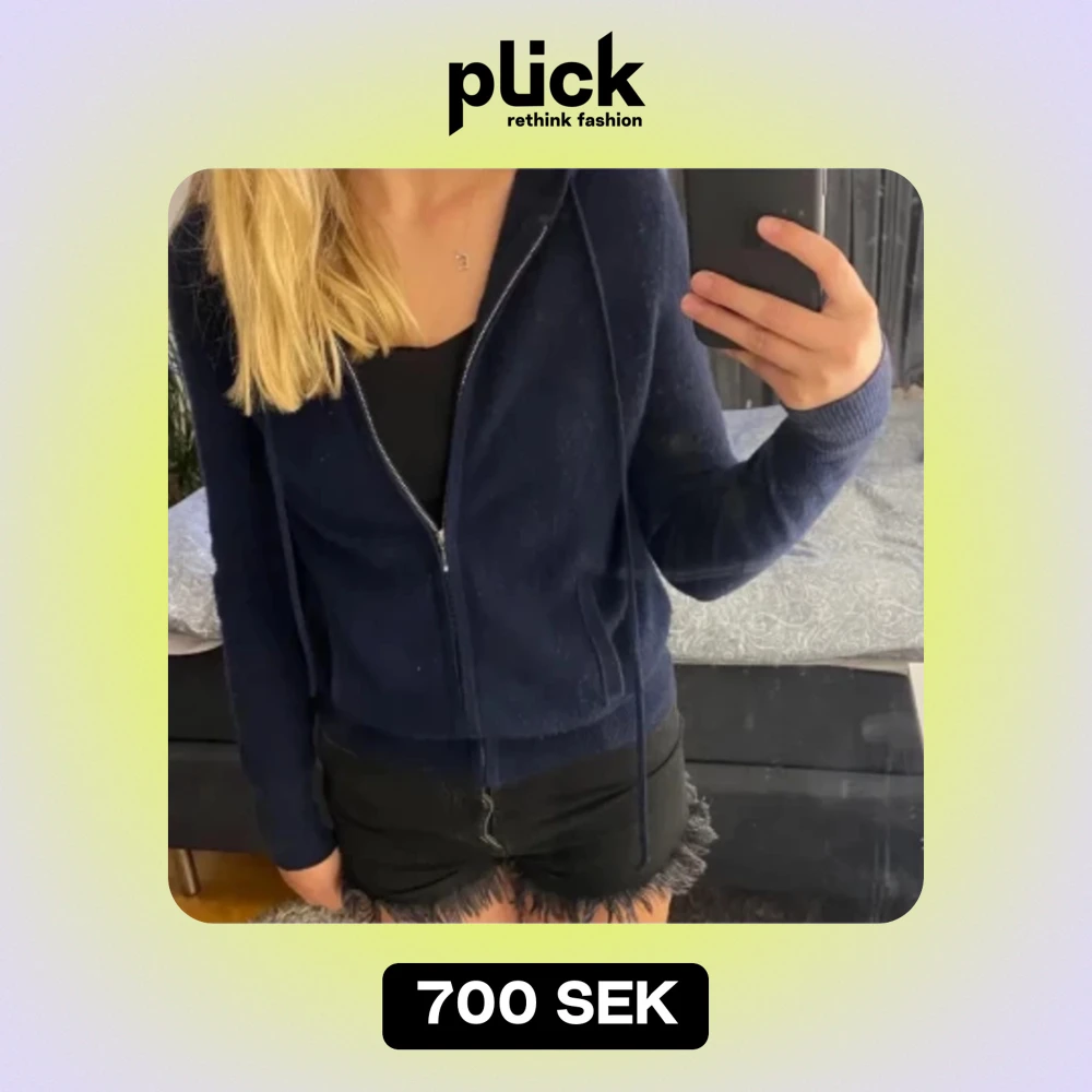 Säljer min super fina kaschmire zip hoodie från soft goat i mörkblå, storlek M men passar xs-M