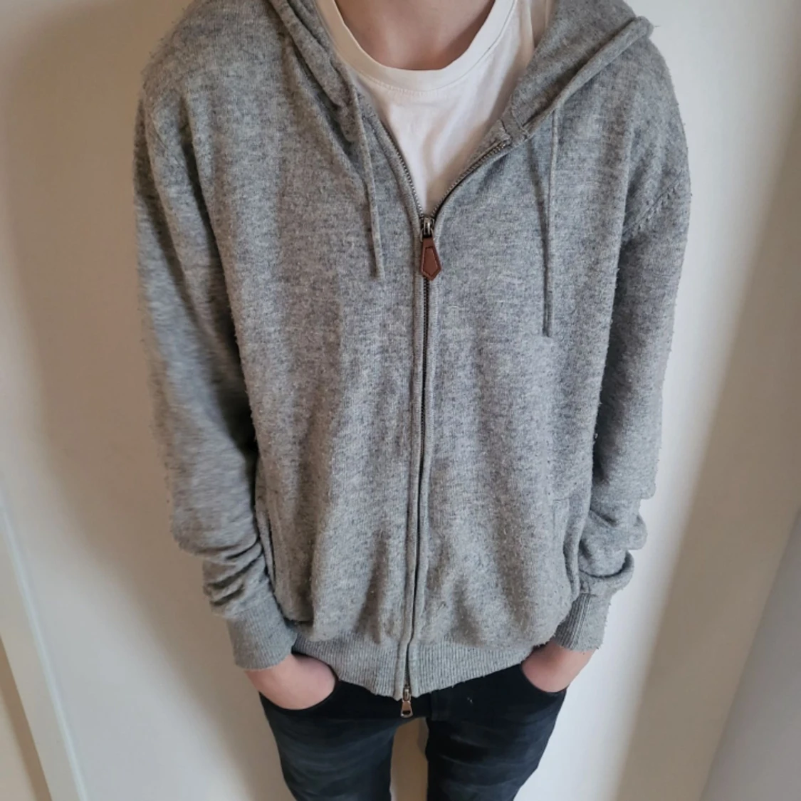 Säljer denna fina kashmir hoodie. Tröjan är ganska nopprig därav priset samt ena dragkedjan är lite rostig men inget man märker.