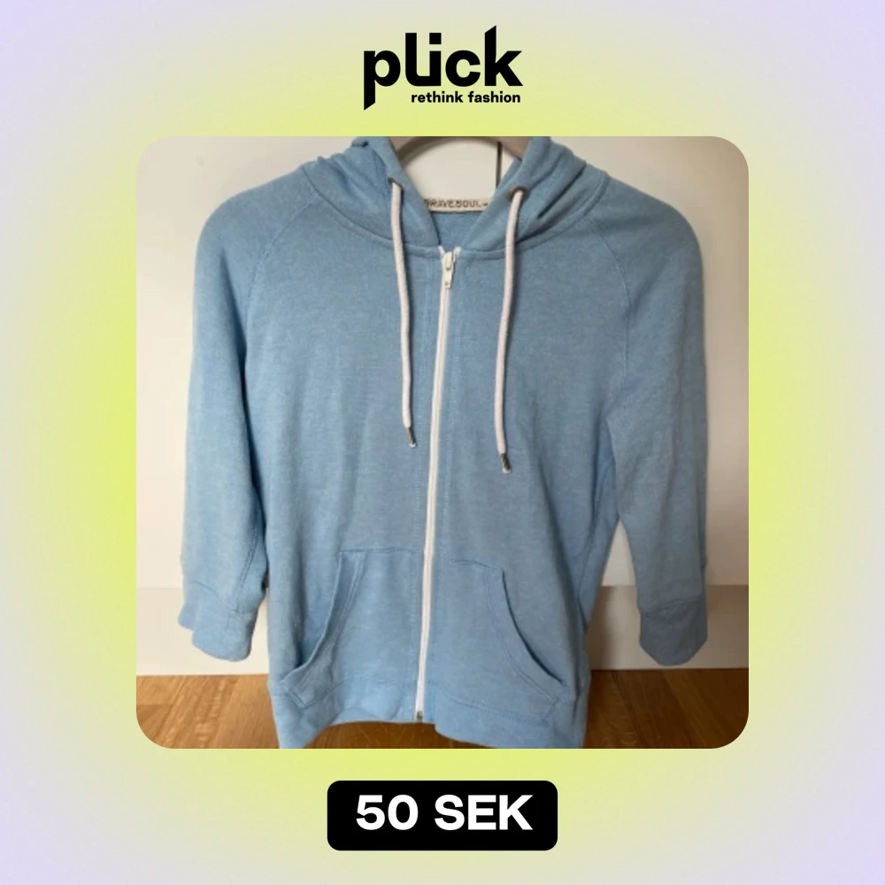 Ljusblå sportig trekvartsärmad tröja med dragkedja. Från Bravesoul strl M, men sitter mer som S.