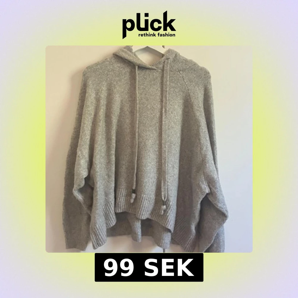 Mjuk och gosig stickad hoodie i ljusgrå nyans. Eftersom den är oversized i modellen skulle jag säga att den passar någon som bär XS-M 💖