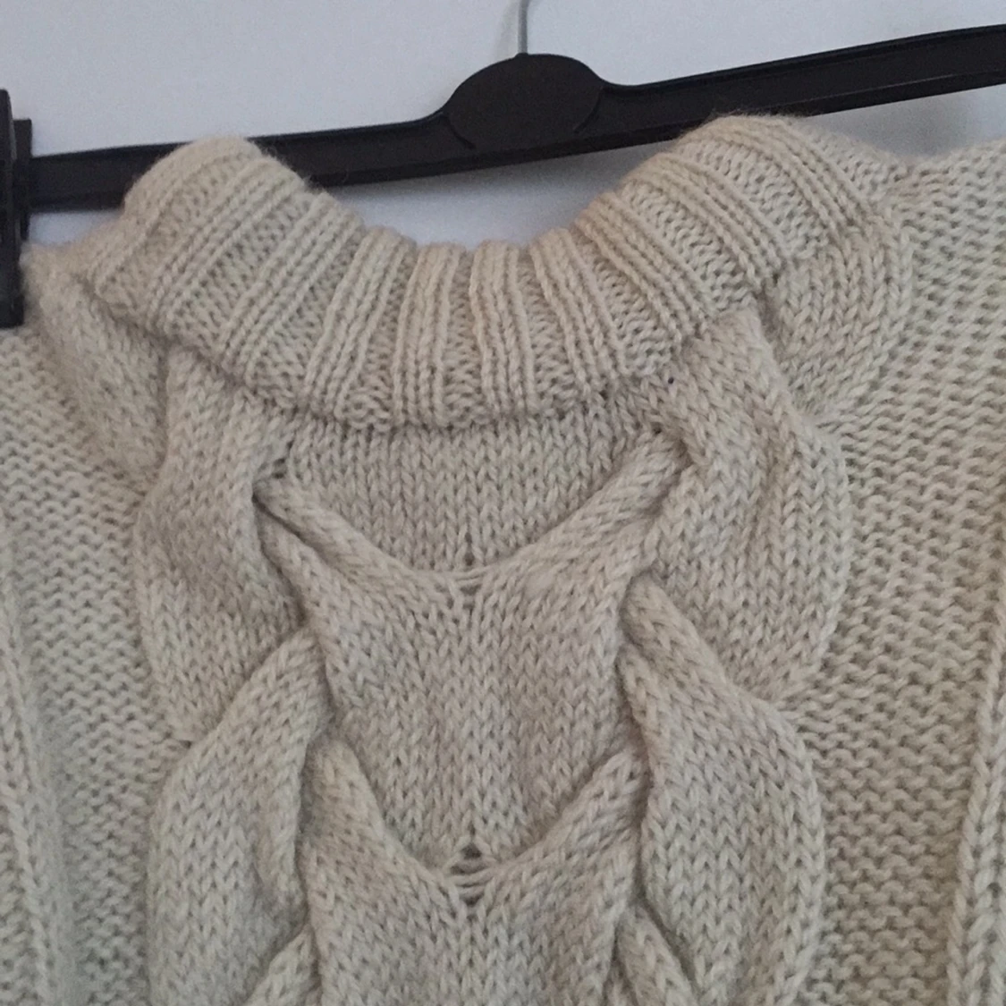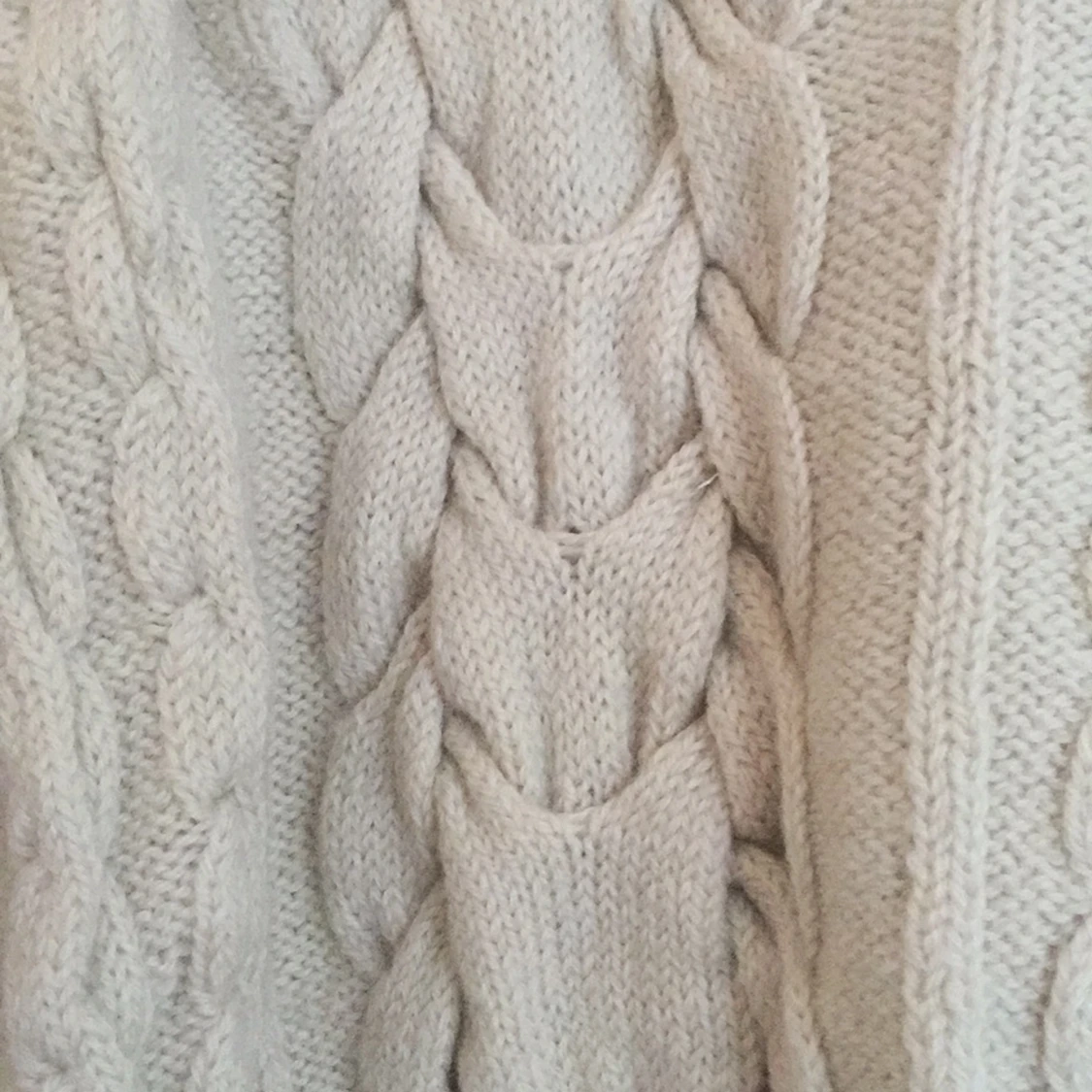 Stickad kabeltröja i storlek 36. Vit/ljus-beige i färgen. Av 100% bomull.