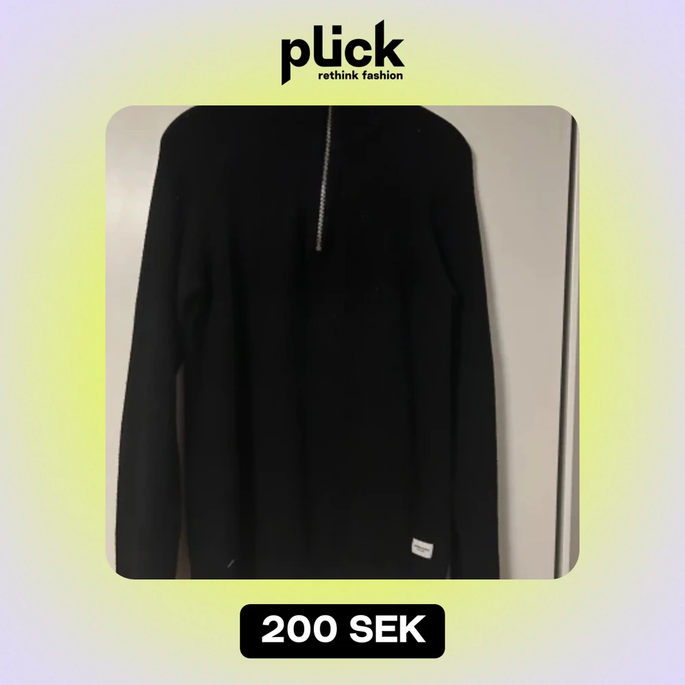 Säljer en svart stickad halfzip från Jack & Jones. Väldigt bra skick i storlek M