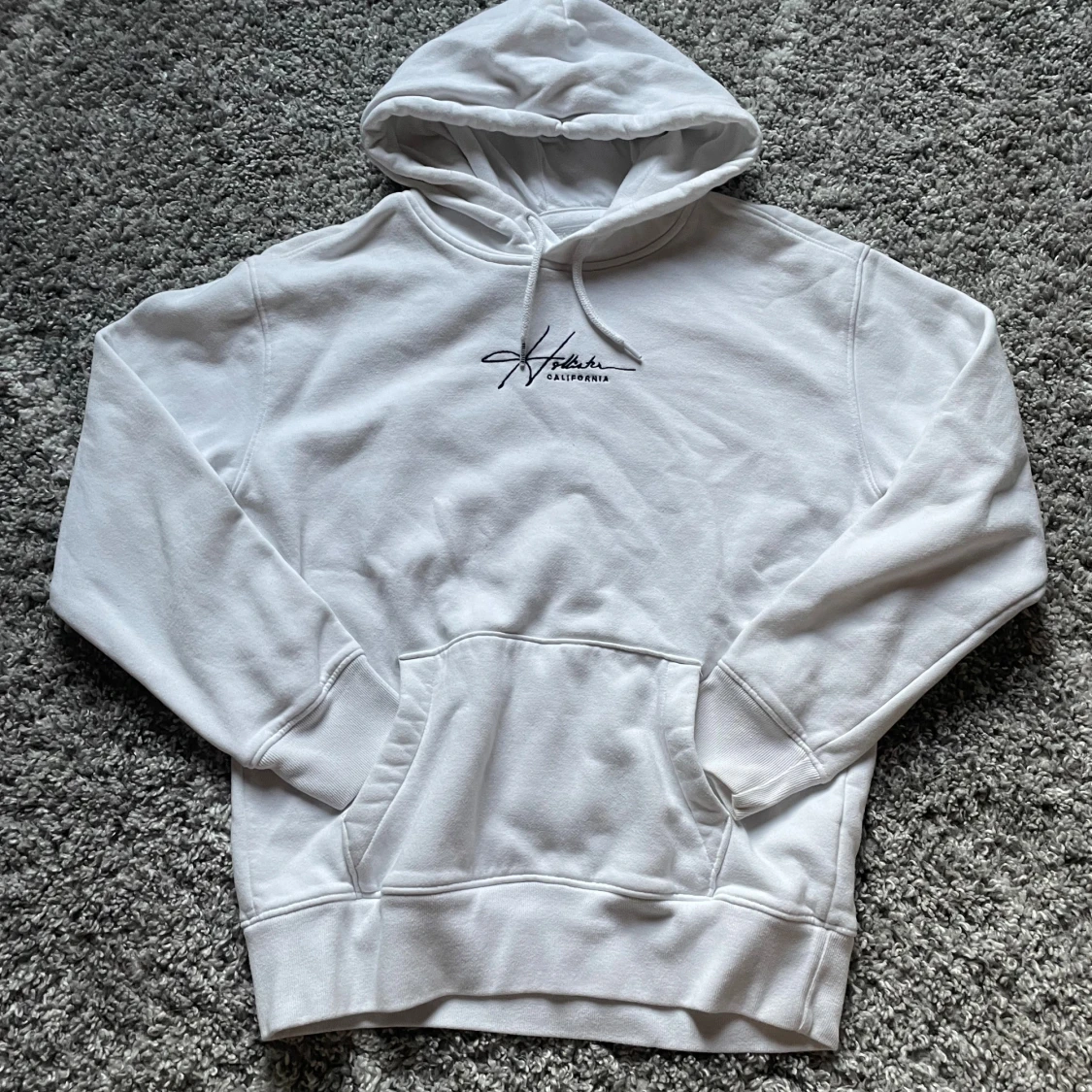 En vit hollister must-have hoodie i bra skick storlek är S det är bara att skriva till mig vid frågor eller minsta intresse :)