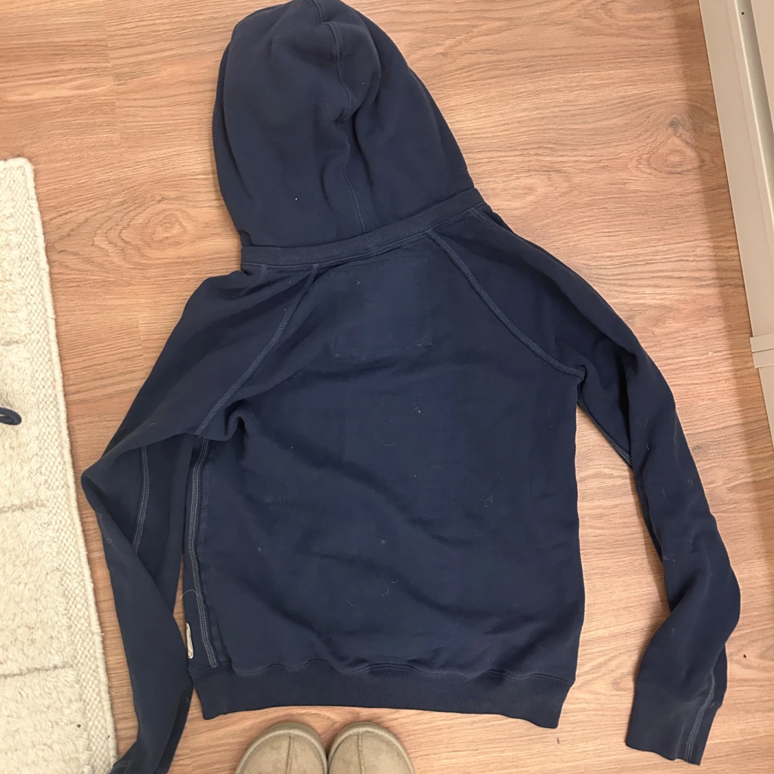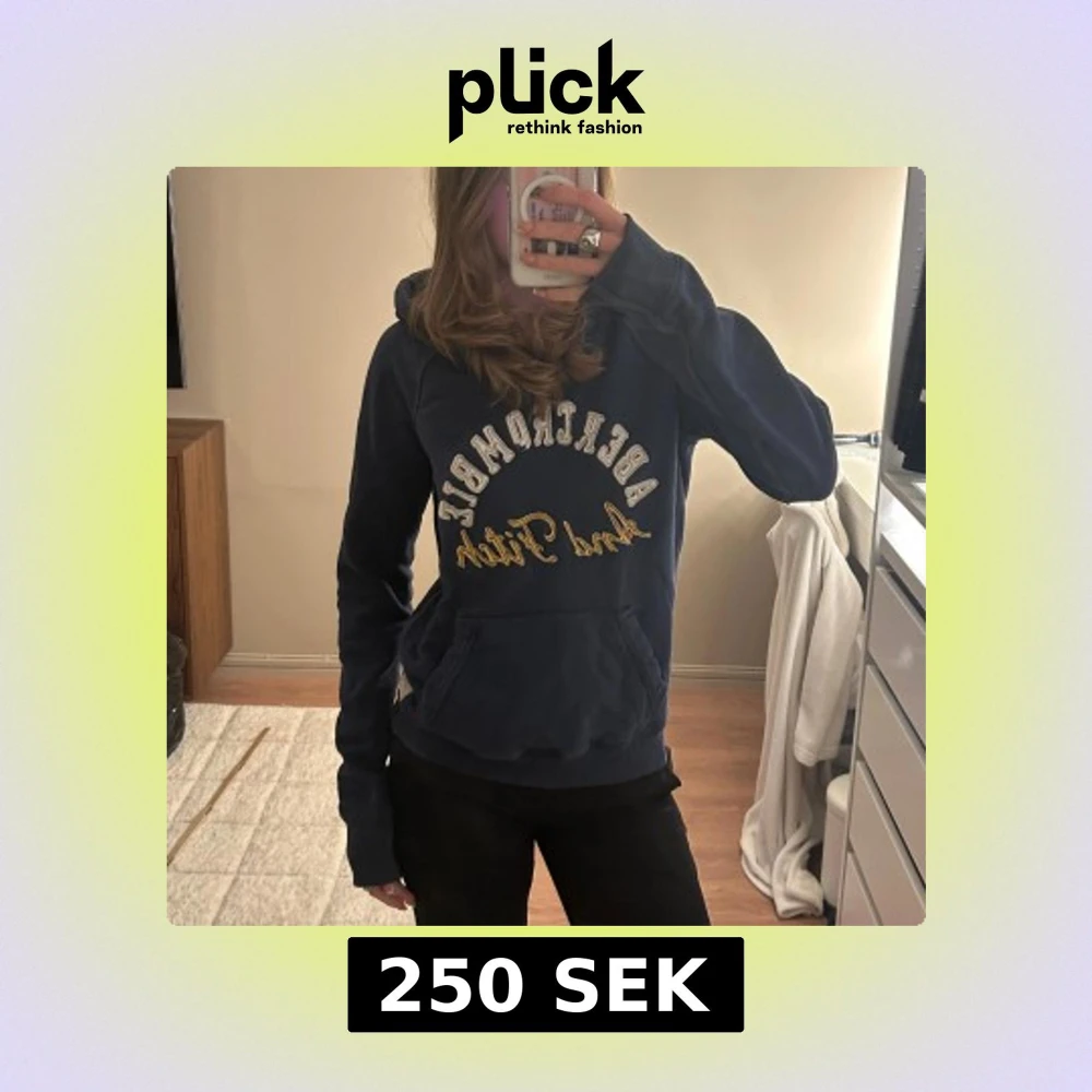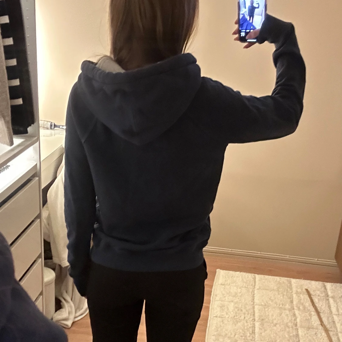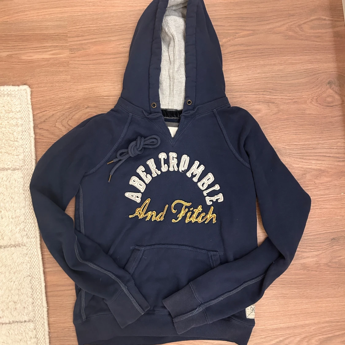 Jättesnygg mörkblå hoodie från Abercrombie & fitch. Jättebra skick. Står ej någon storlek i men skulle gissa på en strl S!
