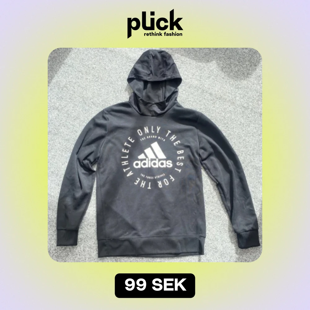 Säljer en svart hoodie från Adidas🤩Tror det är till för träning med tanke på det ”håliga” tyget runtom luvan & lite tunnare hoodie!! Strl.XL, men i barnstorlek så passar nog XS-S🙌🏻I bra använt skick. Deras märke är tryckt på framsidan🤗Kolla min profil