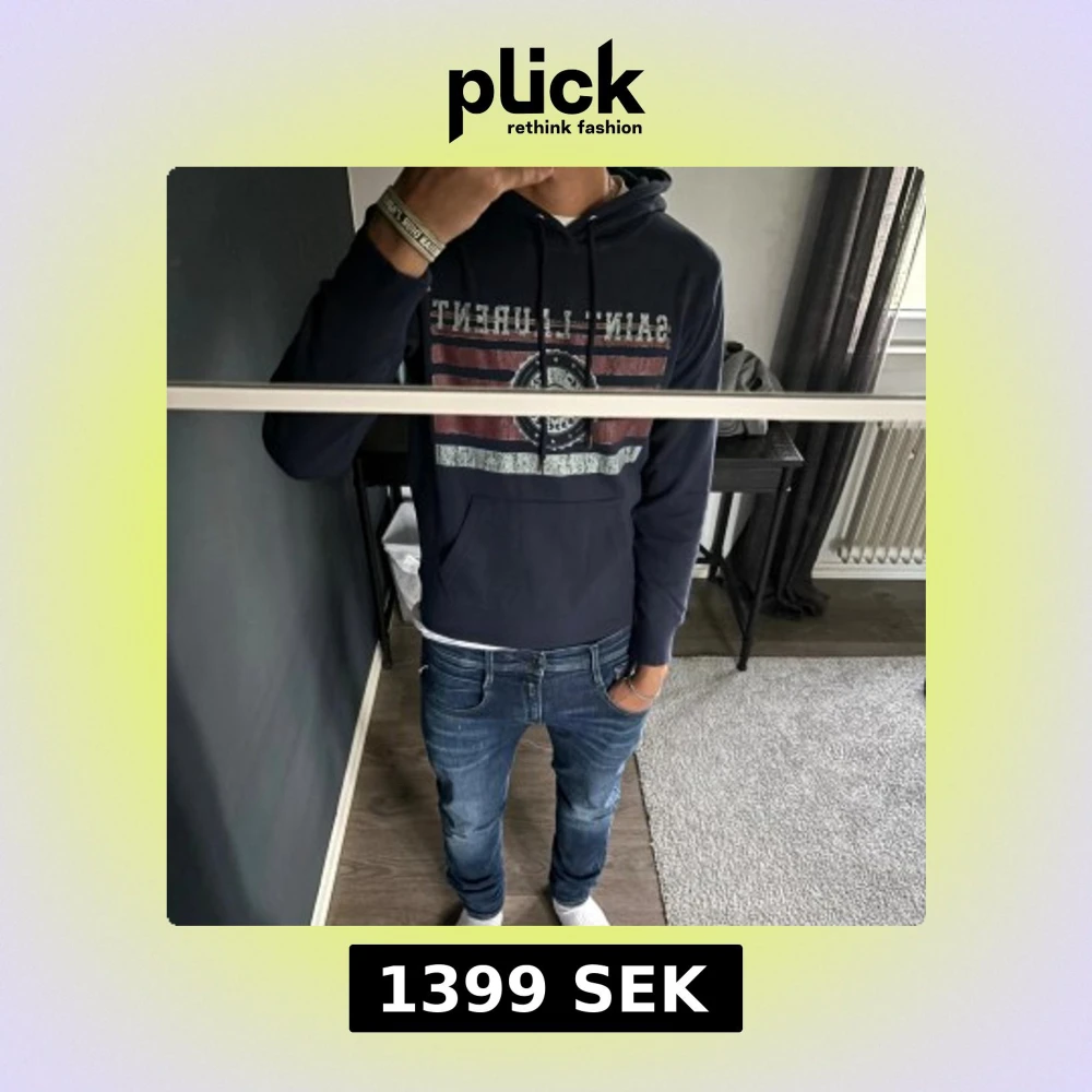 Tja, säljer en fet mörkblå Saint Laurent hoddie i storlek S, modellen är 178 cm lång och tröjan är lite liten i storleken så passar runt 170-175, köpt på plick, pris går att diskutera vid snabb affär💯🍾🍾