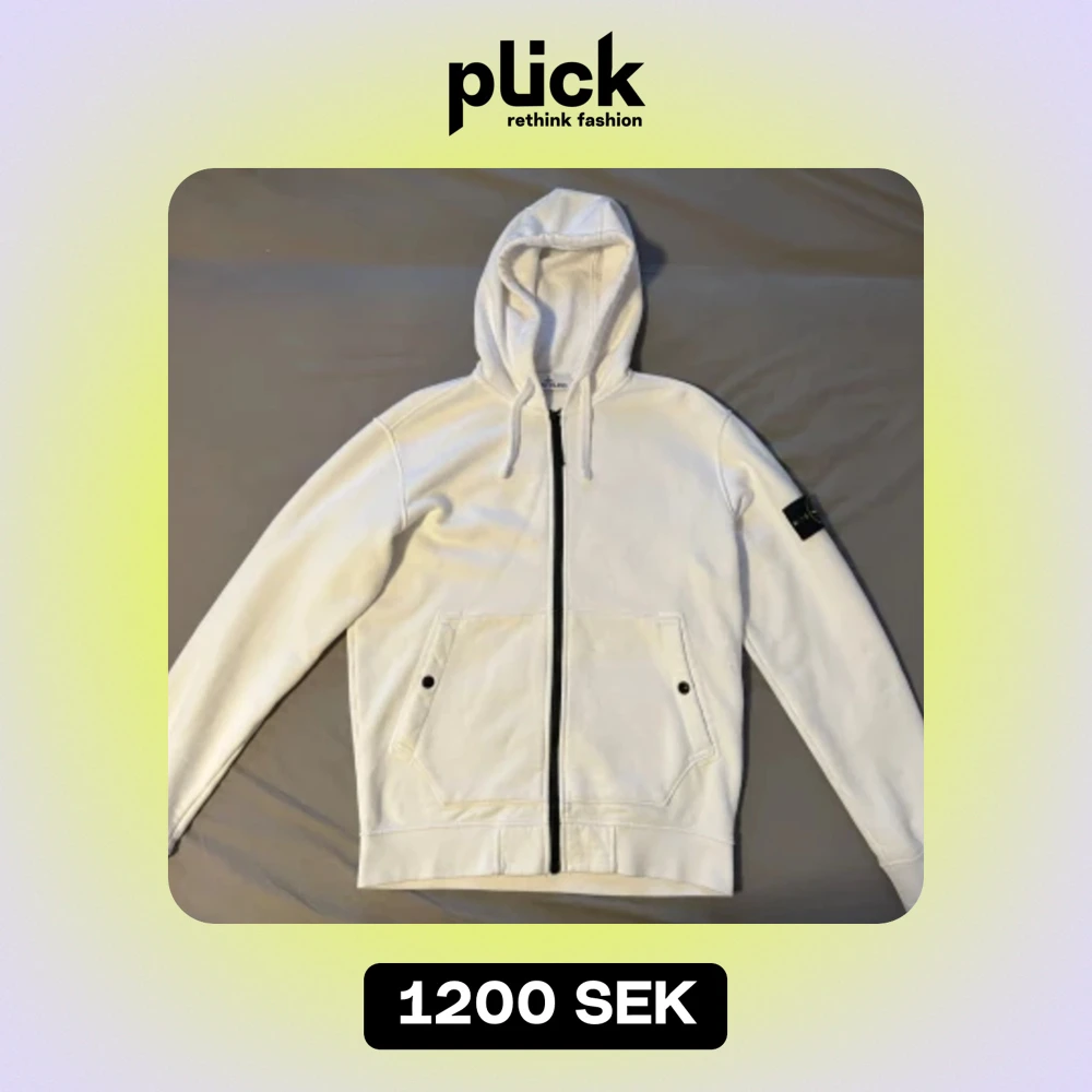 Vit Stone Island kofta, Storlek M men passar S. Använd lite men nästan som ny. Säljer pågrund av att jag rensar garderoben och behöver lite pengar. Skriv för mer bilder osv….