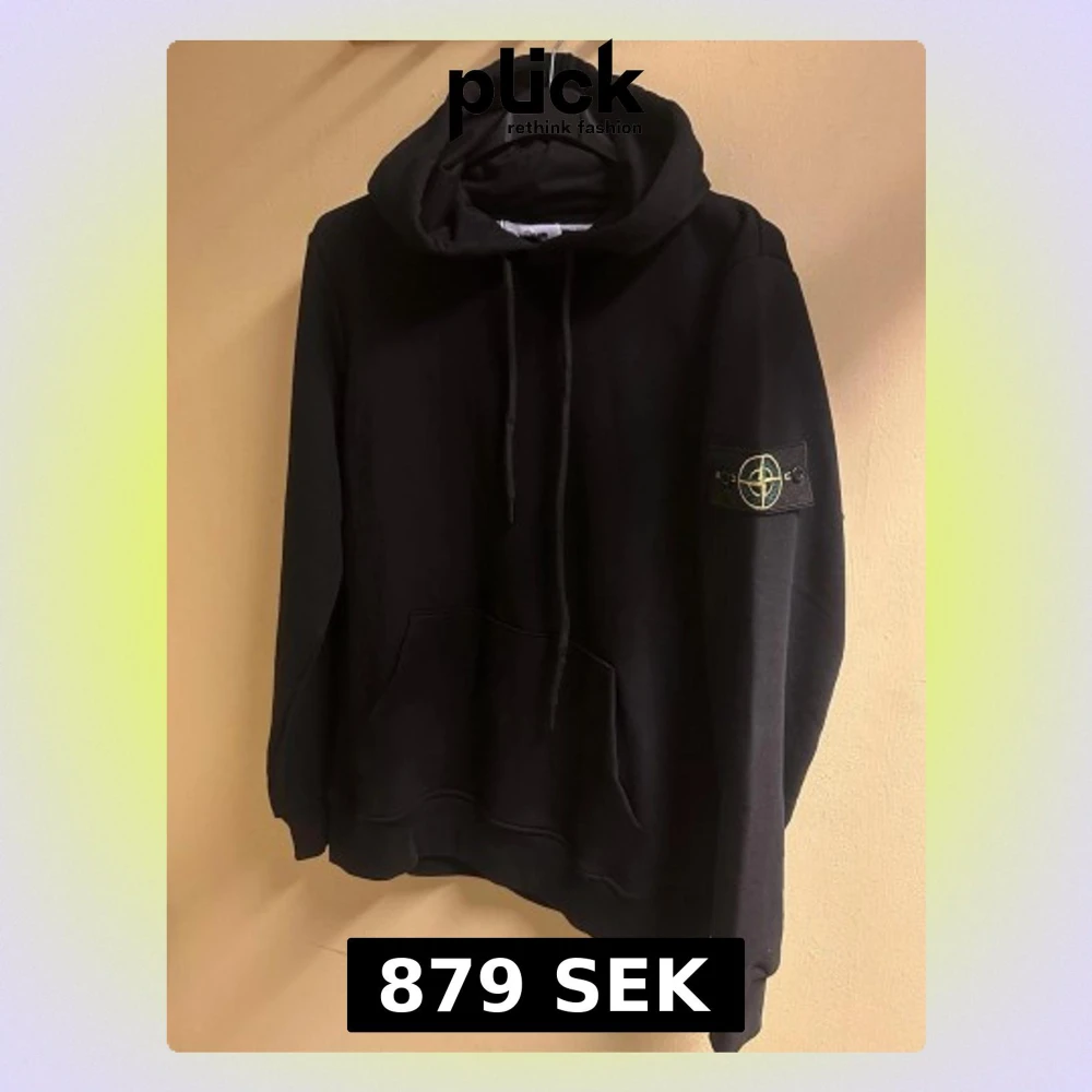 Svart hoodie från stone island med klassiska logotypen på vänster arm. Oanvänd endast testad.
