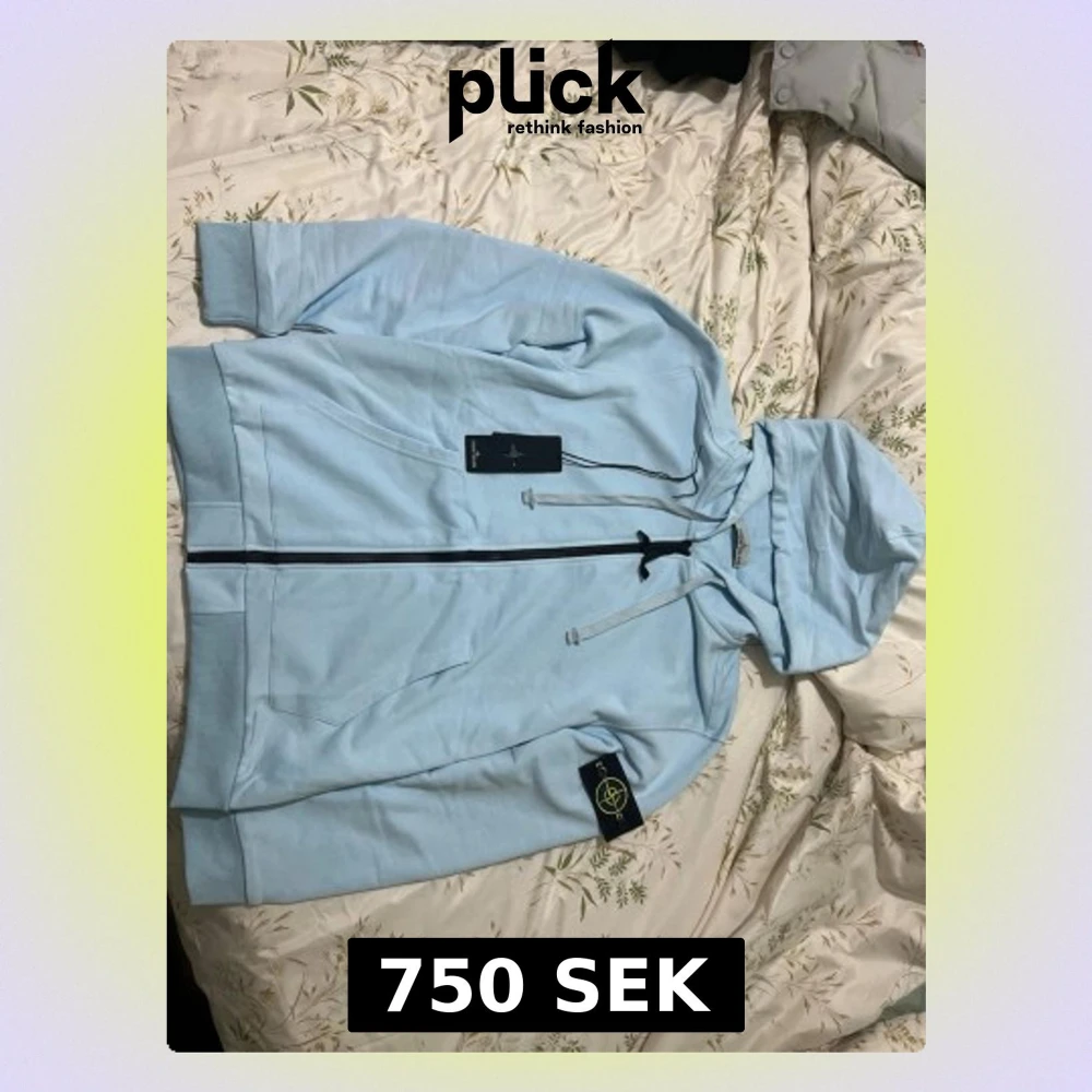 Snygg ljusblå hoodie från Stone Island med dragkedja framtill och klassisk logopatch på vänster ärm. Tillverkad i mjukt bomullsmaterial och har två fickor samt justerbar huva med snören. Perfekt för en chill och stilren look.