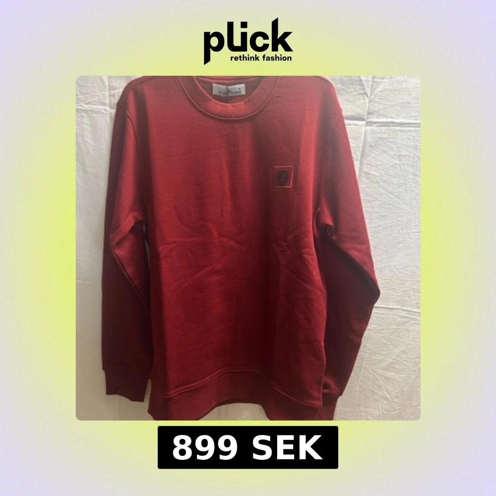 Snygg röd sweatshirt från Stone Island med klassisk rund hals och broderad logotyp på bröstet. Tröjan har långa ärmar och ribbade muddar vid ärmslut och nederkant. Obs! Skriv önskad storlek efter lagd beställning. Alla storlekar finns.
