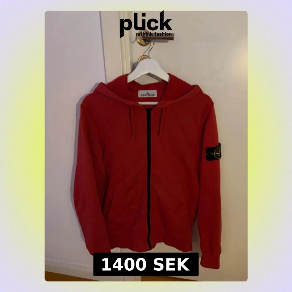 Röd stone island zip hoodie i storlek S. Använd sparsamt, ny pris 3199.
