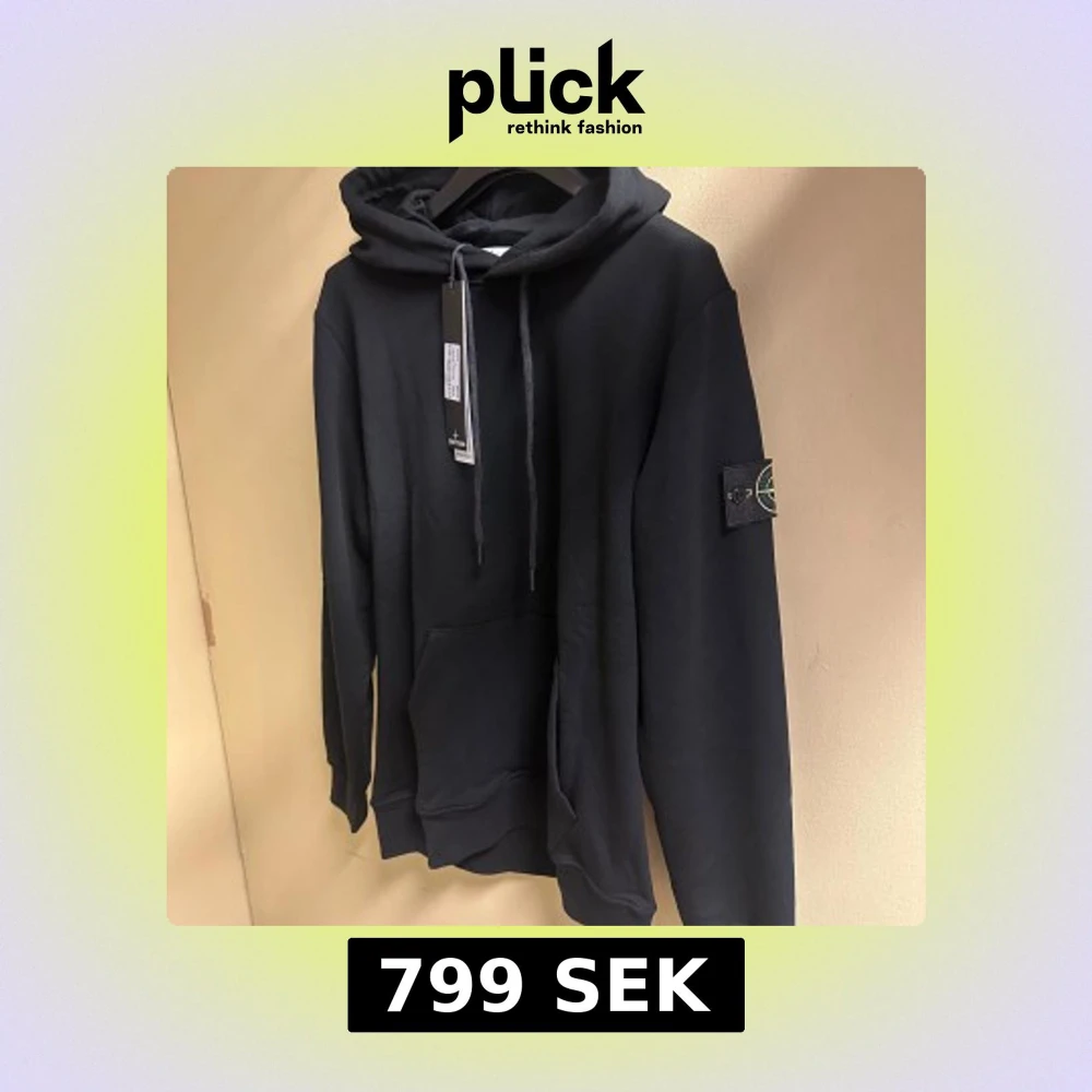 Svart hoodie från Stone Island med klassisk patch på vänster ärm. Tröjan har huva med snörning, stor magficka och ribbade muddar. Perfekt för dig som gillar streetwear och vill ha en stilren look. Materialet är mjuk bomull och passformen är normal.