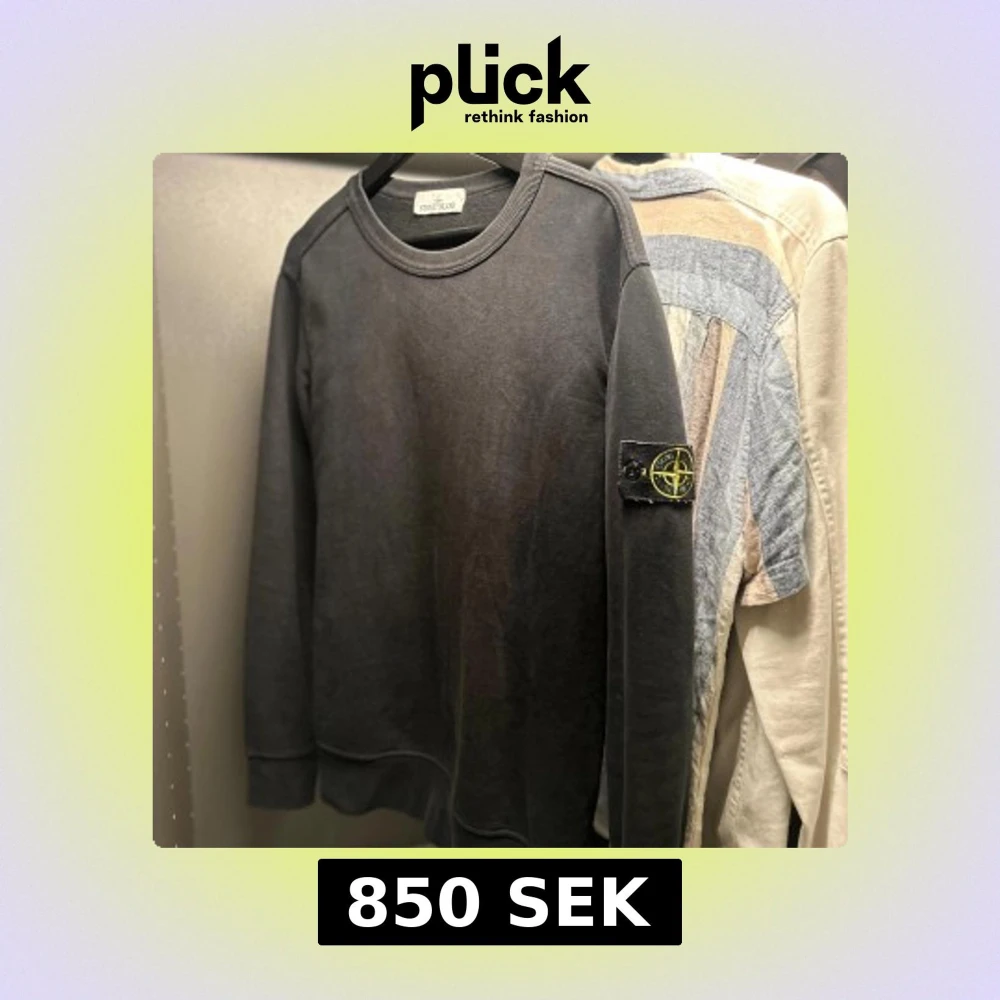 Svart sweatshirt från Stone Island med klassisk rund hals och patch på vänster ärm. Tröjan är i bomull och har en stilren look. På mig som är 184cm och ca 70kg sitter den lite ”lösare”.