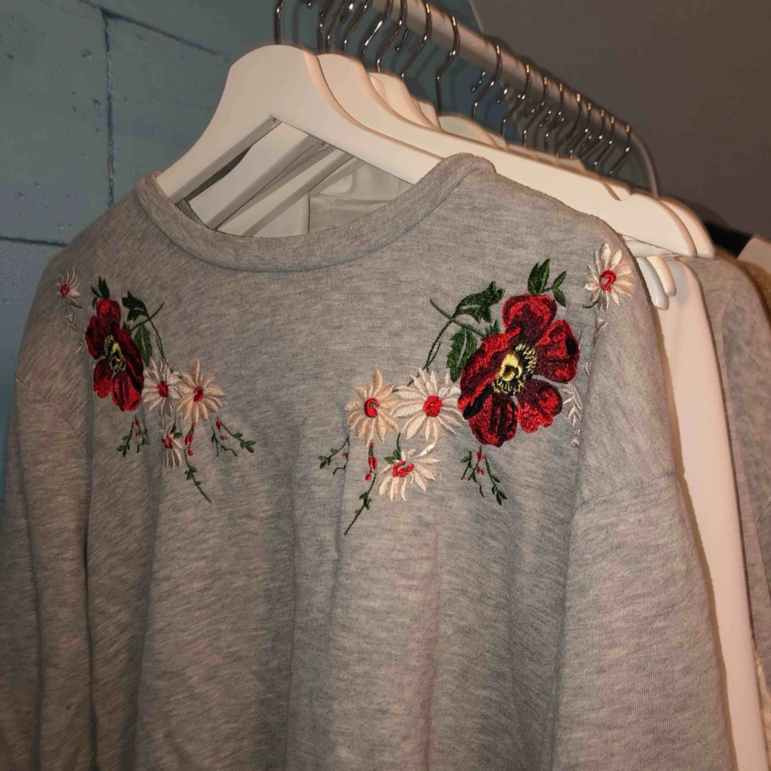 Basic grå sweather från strandivarius med brodyr över bröstet