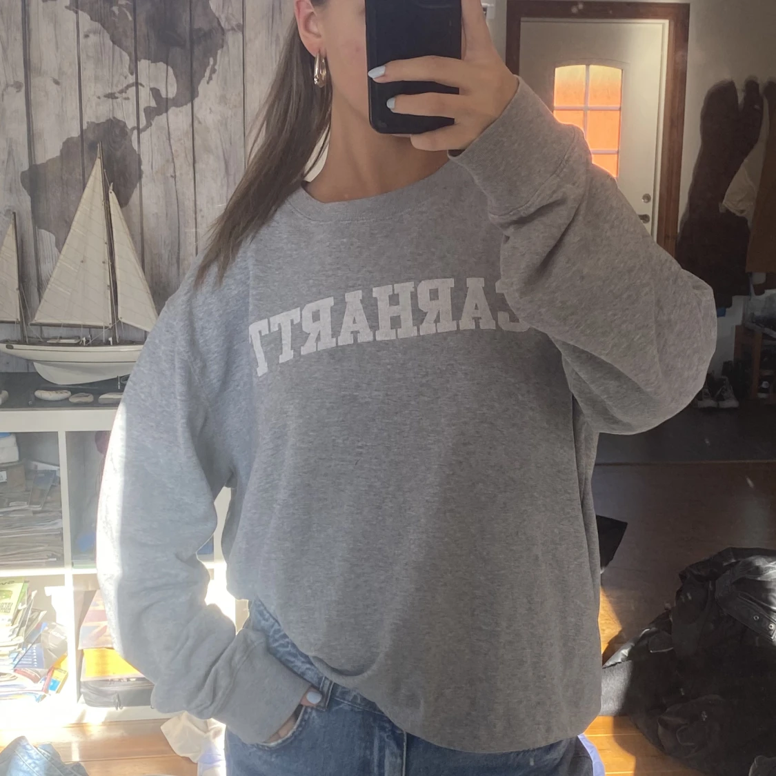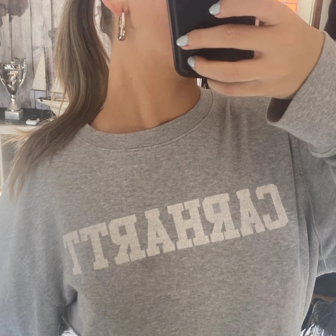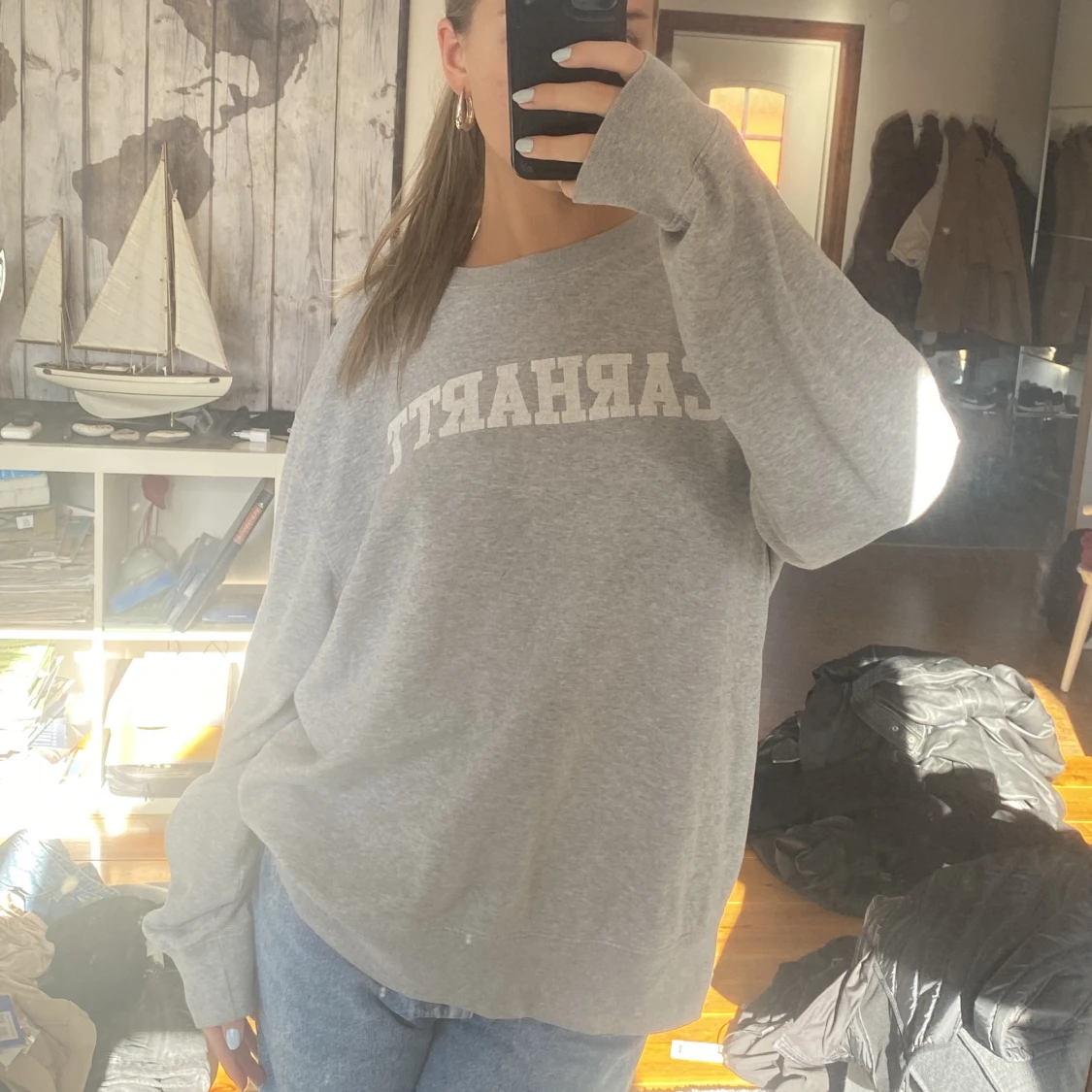Ljusgrå carhartt sweatshirt i strl XL, sitter snyggt oversize på mig som är XS/S