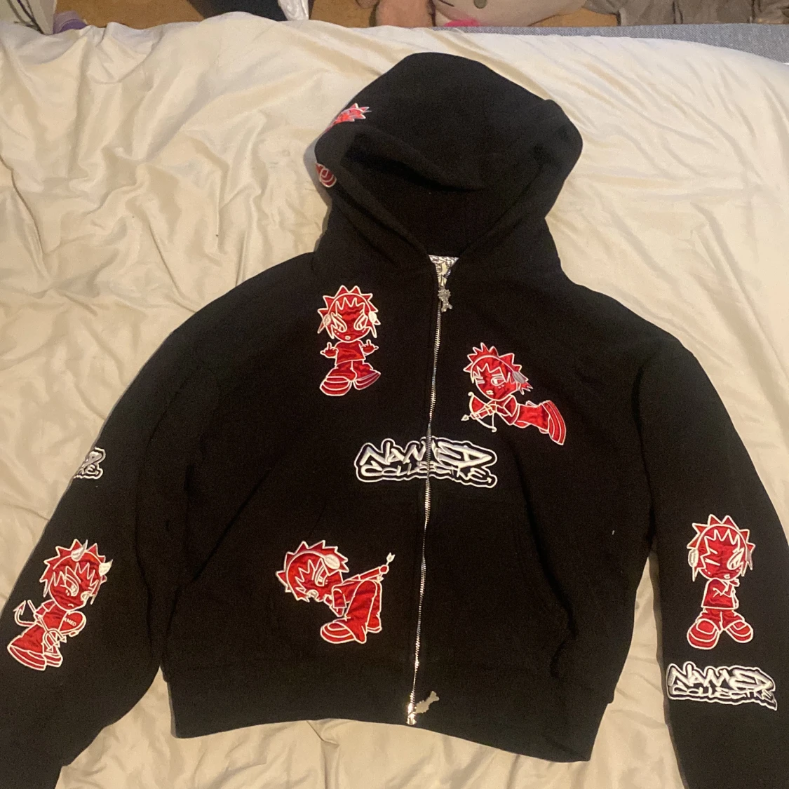 Svart Röd Misbehave set från Named collective. Betalade runt 4500 efter all frakt. Hoodien passar mig Man 180cm, kort vid magen, men byxorna bra storlek. För min flickvän 158cm passar allt som en större M. Hör av er vid funderingar🫶🏼