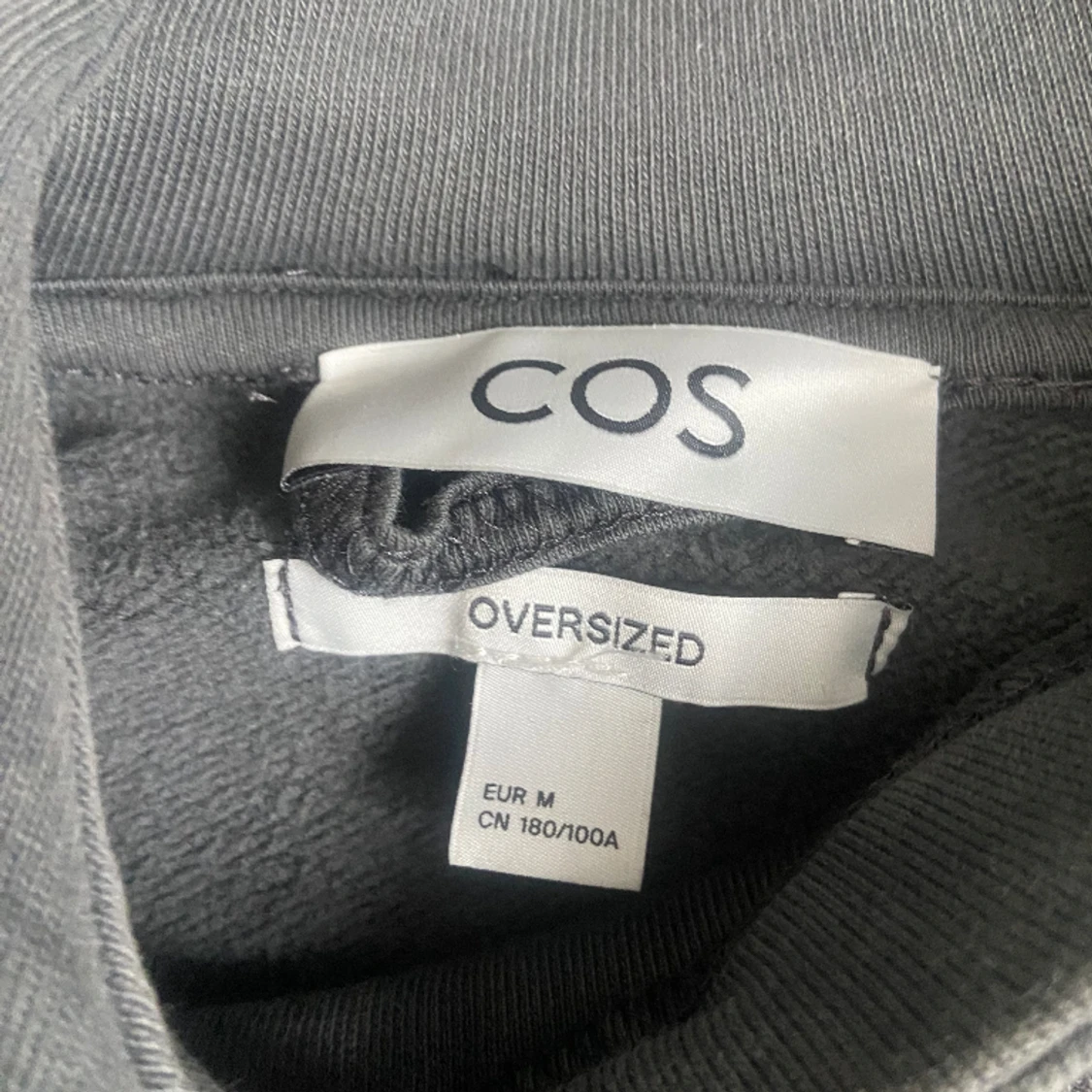 En grå hoodie från cos i oversized fit stl M, passar unisex, sparsamt använd
