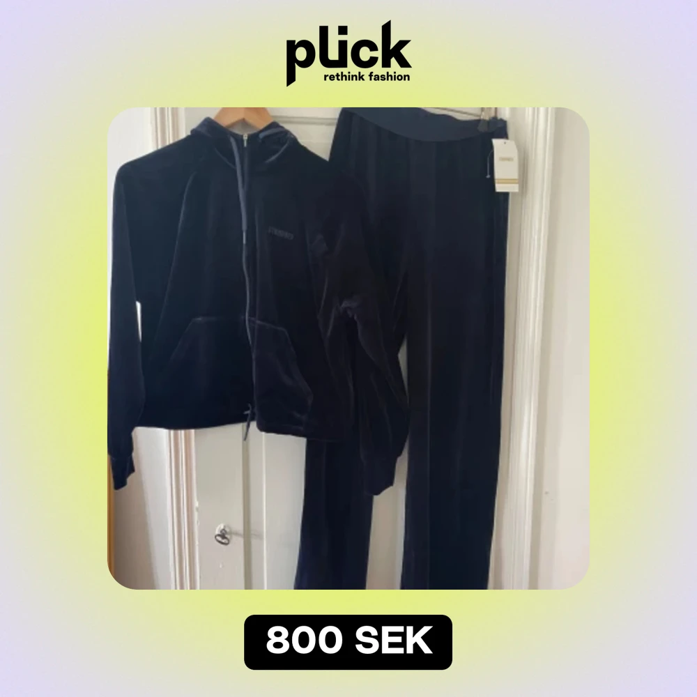 Mörkblått mjukisset från stronger i velour. Hoodien är använd få gånger och byxorna är aldrig använda med lappen kvar. Ursprungligt pris 1500kr för hela setet.