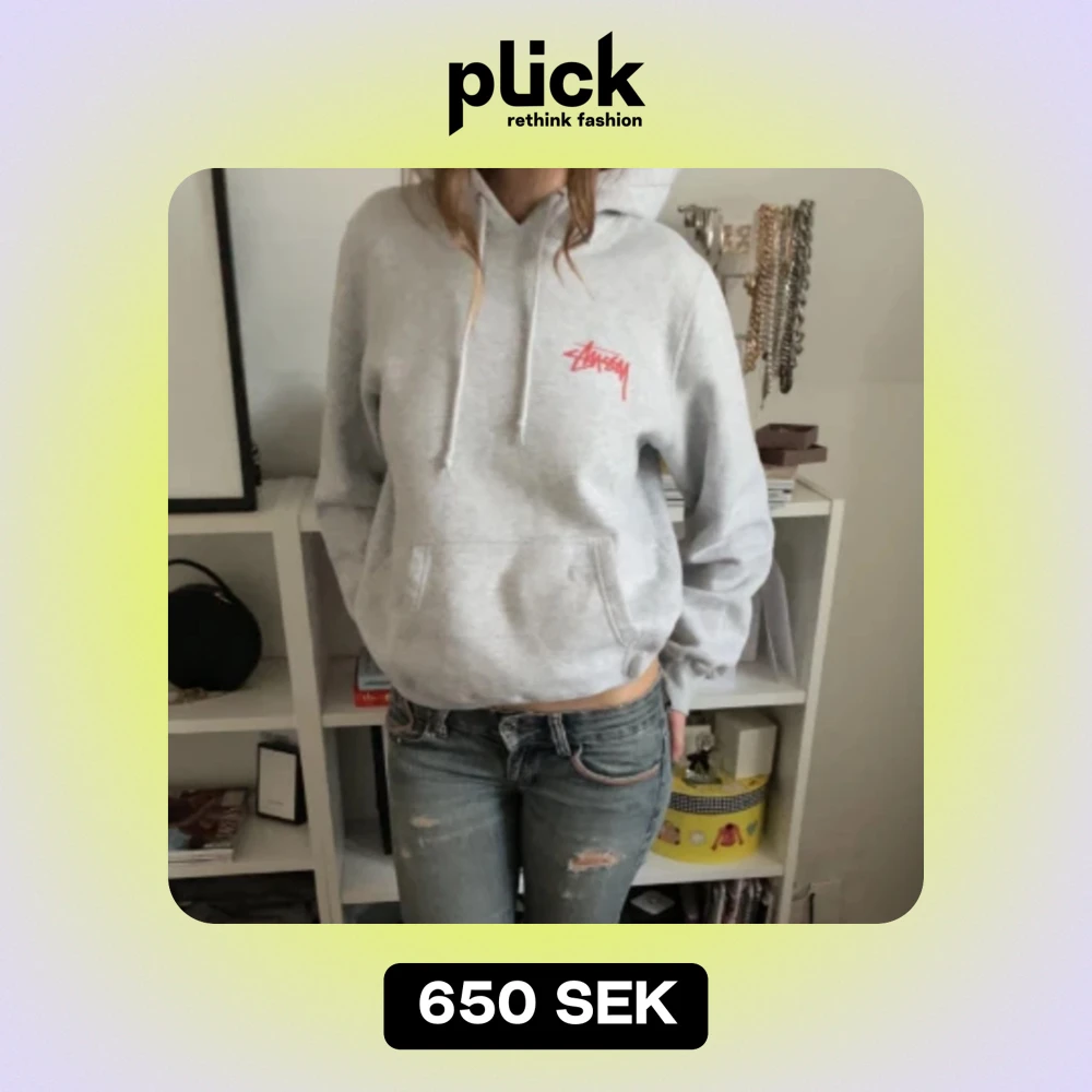 Jättecool grå stussy hoodie i storlek S. Denna är jättefin och har coola detaljer med röd text. Knappt använd och inga defekter. Skriv för fler bilder!❤️🔥