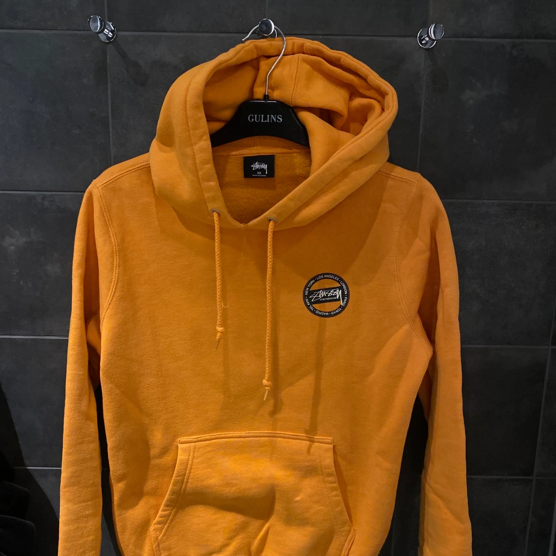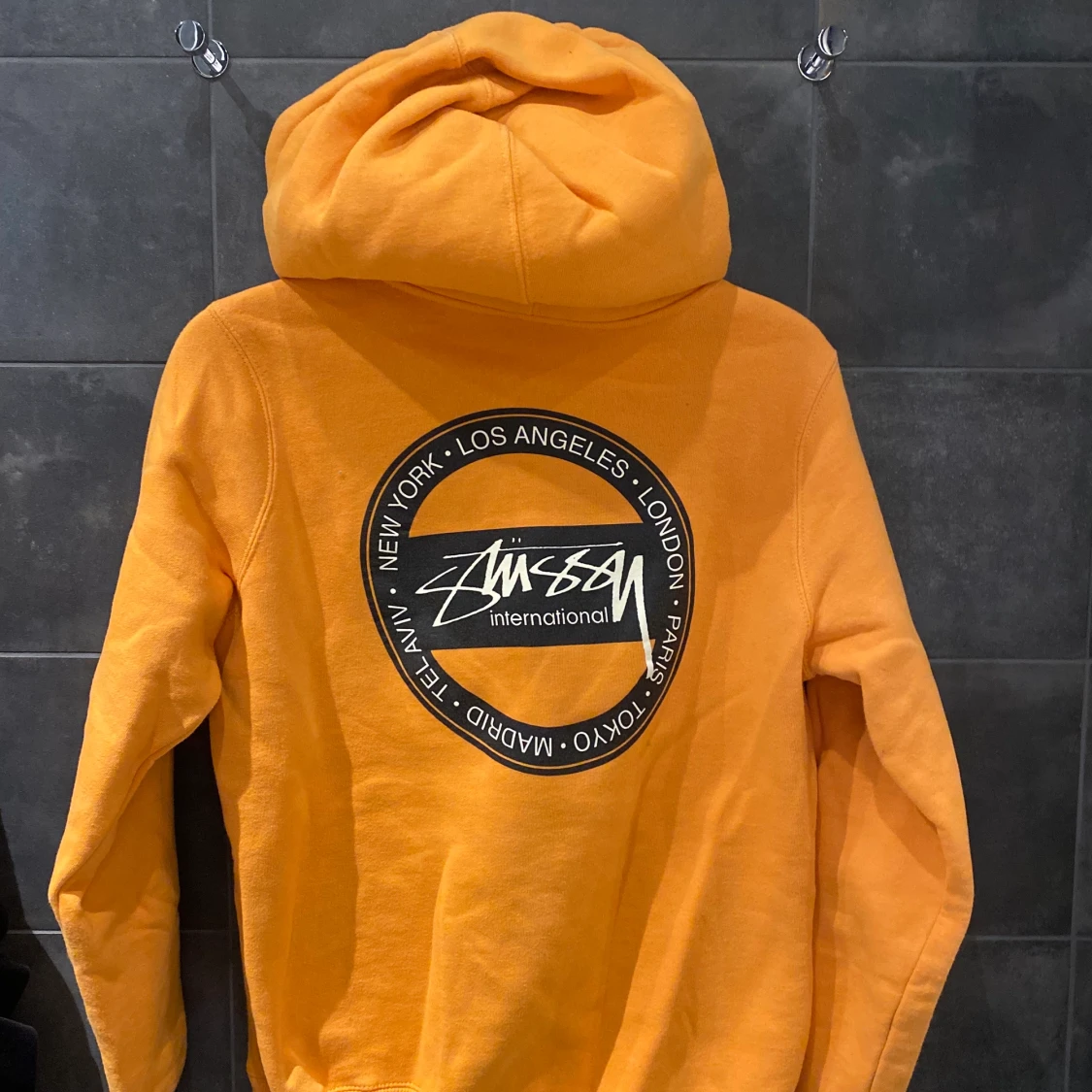 Sparsamt använd stüssy hoodie. Xs, orange. 500 kr, ej inkl frakt😊