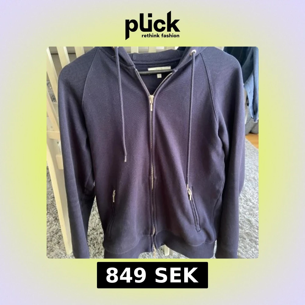 Mörkblå ziphoodie från suitsupply. Storlek XS men sitter större (~S). I mycket gott skick förutom att pluppen på ena huvspännet har lossnat (se bild). Det är dock inget man tänker på överhuvudtaget. Nypris skulle jag tippa på ligger runt ~2000kr.