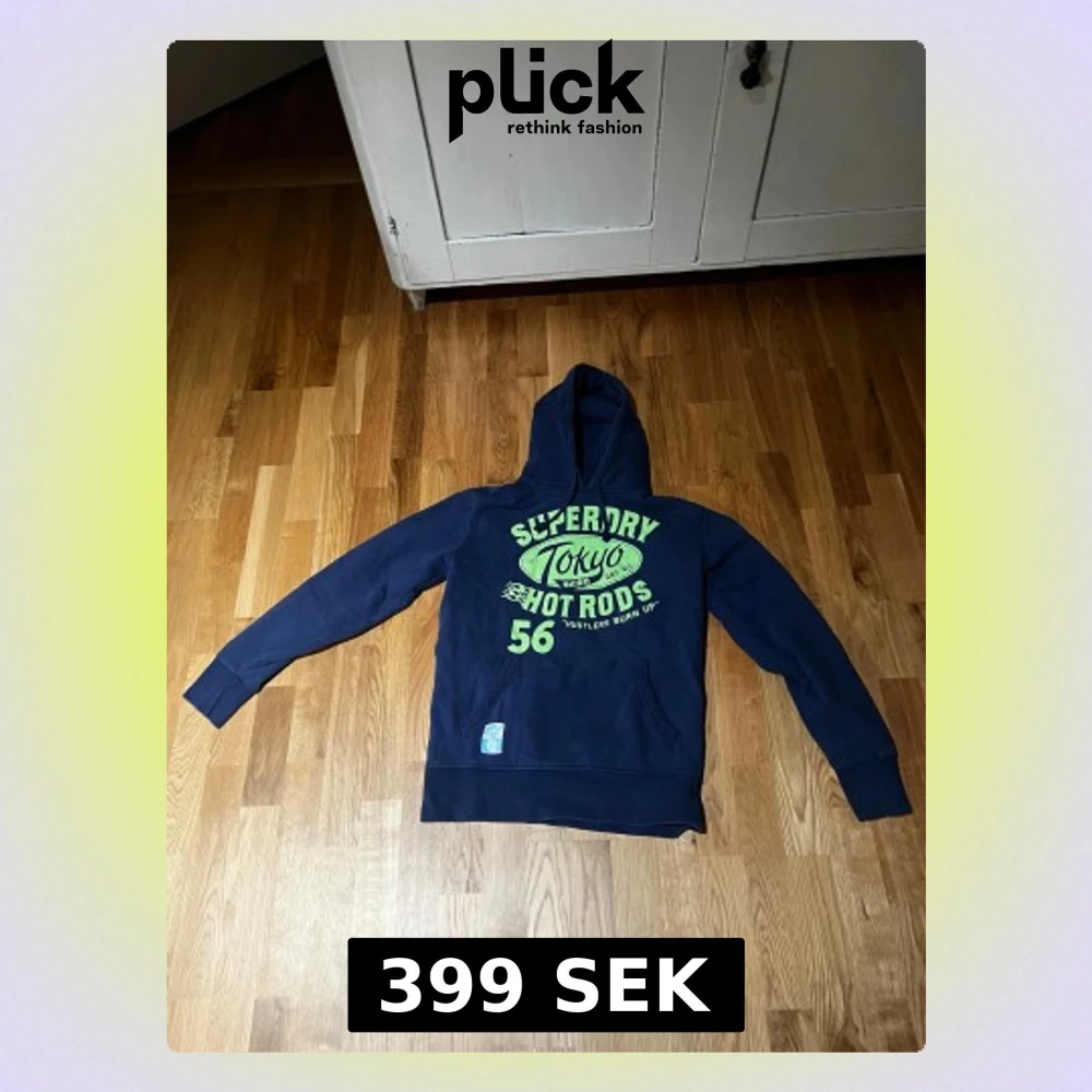 Tjena säljer en fet superdry hoodie som är marin blå.Liknande hoodies kostar allt ifrån 500-1000kr men jag säljer min för bara 399.Det är storlek M men skulle även passa storlek S.Just denna modell är väldigt eftersökt så först till kvarn. Om ni har några frågor tveka inte att höra av er💯💯