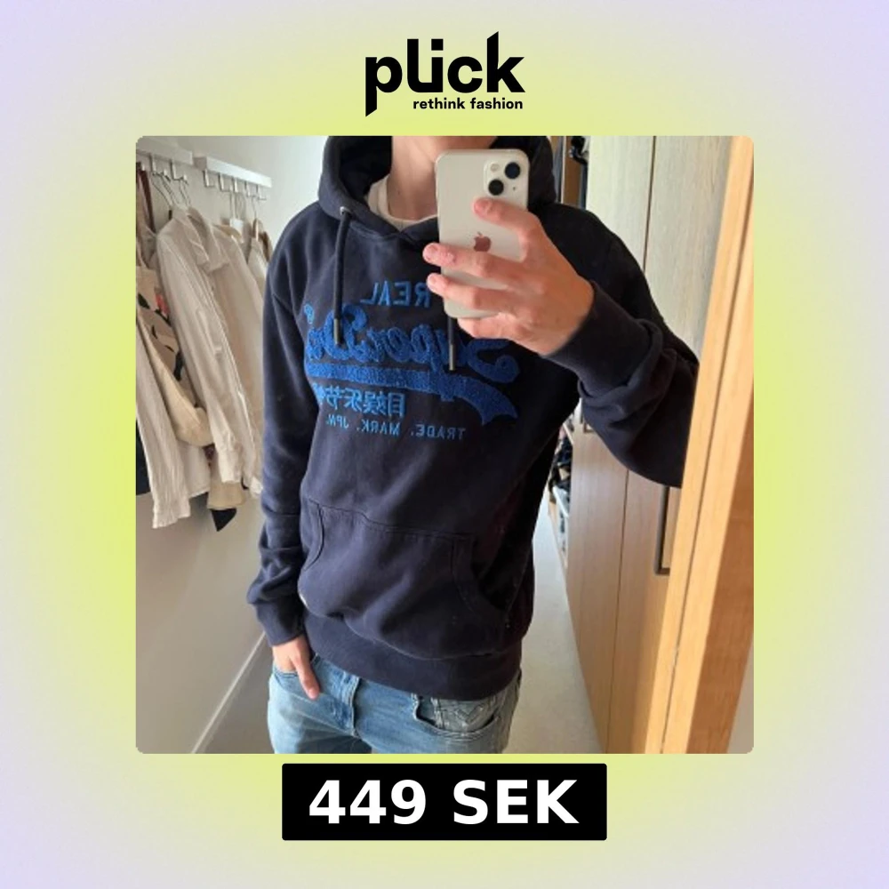 Tjenare, säljer en mörkblå hoodie från Superdry. Skicket är väldigt bra, skulle säga 9/10. Storleken är M, killen på bilden är 180 cm. Släng iväg ett dm för mer frågor! 🍾💯