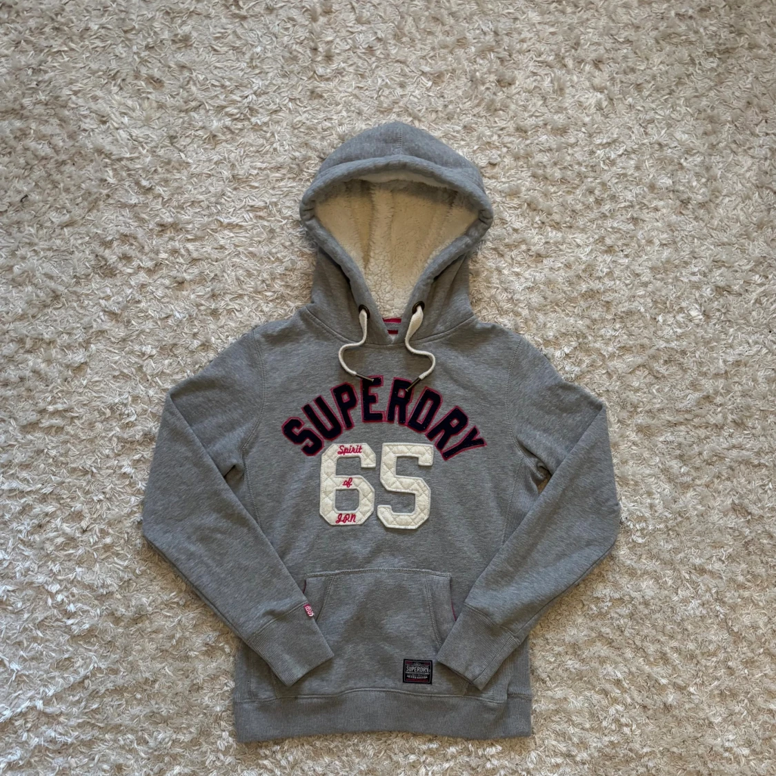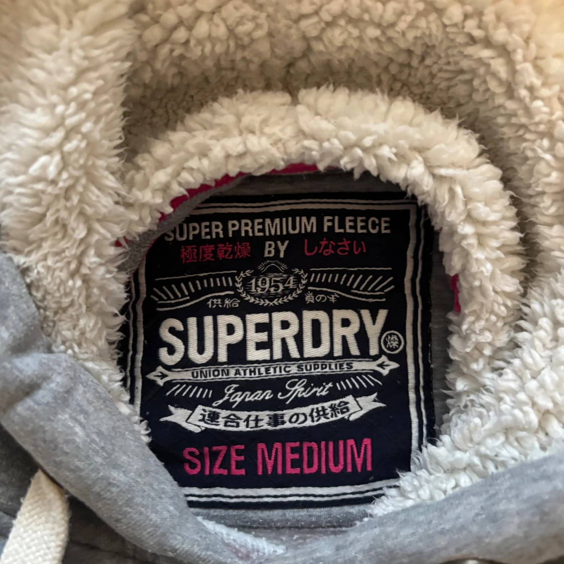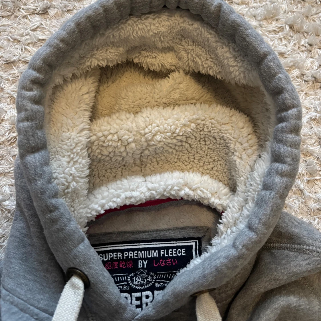 Riktigt snygg grå hoodie från superdry med en fodrad luva vilket gör den extra varm. Topp skick utan defekter. Står storlek M men skulle säga att den som en S herr, tror att det är en dammodell igentligen o därför den sitter mindre. Tveka inte på o skriva vid fler frågor!
