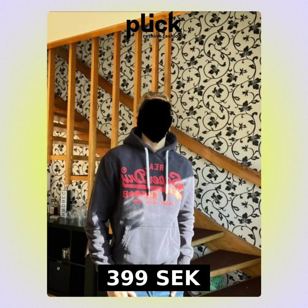 Mörkblå hoodie från Superdry med stort rött tryck på bröstet och vita dragsnören i huvan. Klassisk känguruficka framtill och ribbade muddar vid ärmslut och midja. Perfekt för en avslappnad streetstyle-look.