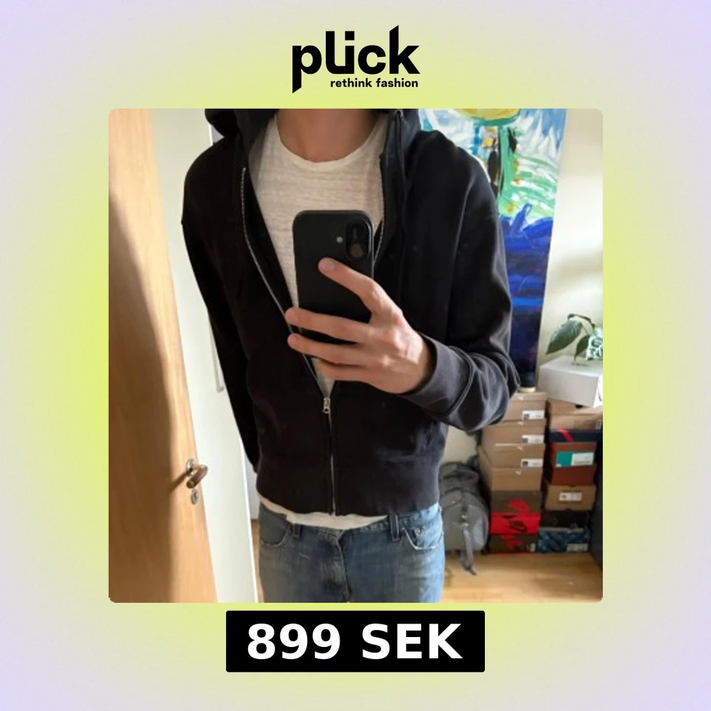 Svart hoodie med dragkedja från Acne. Klassisk modell med huva och snörning, samt två fickor framtill. Perfekt för en avslappnad stil och enkel att matcha med jeans.
