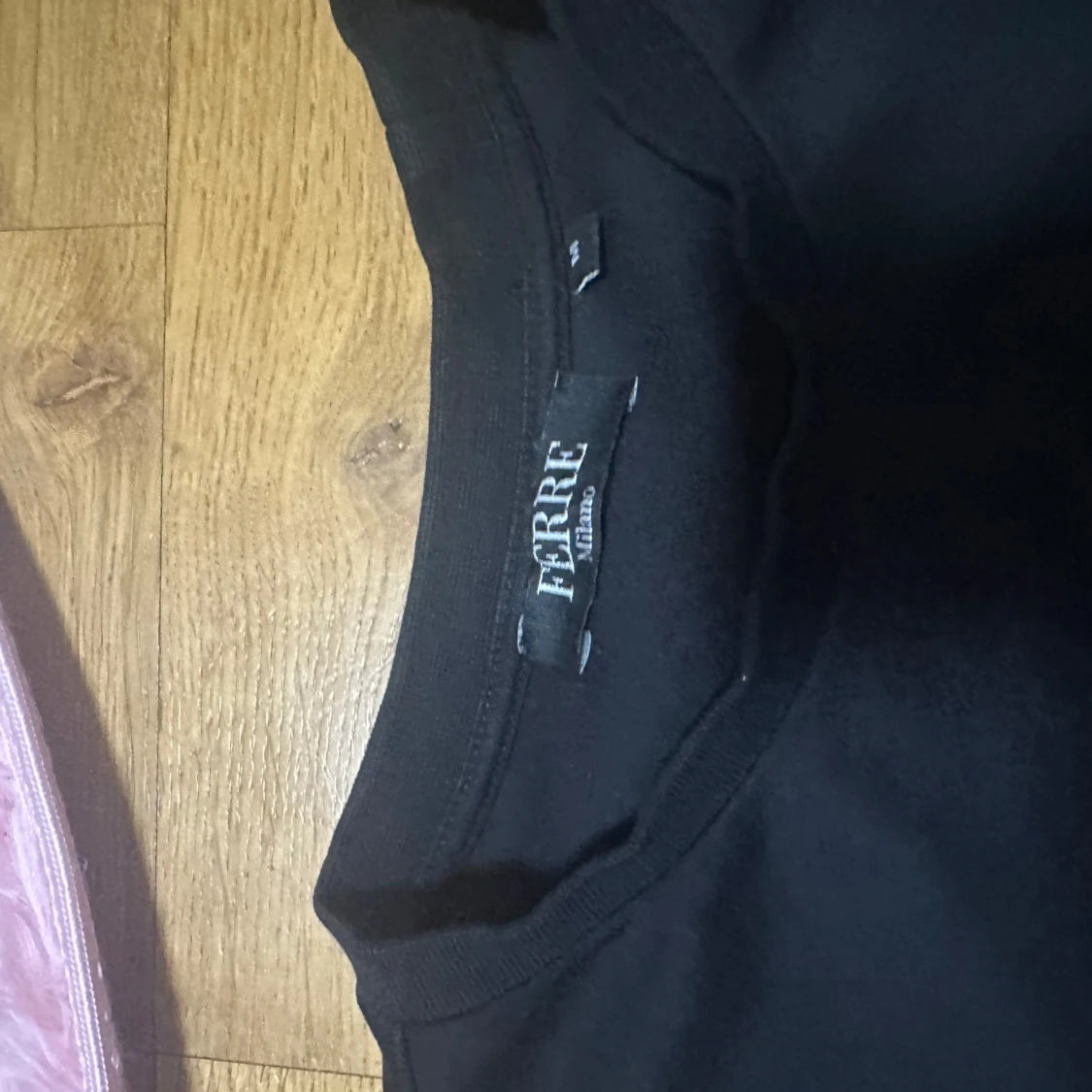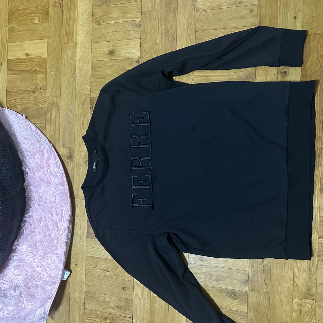 Säljer en stilren svart tröja från Ferregamo med märkets namn diskret tryckt på framsidan. Tröjan har långa ärmar och en klassisk rund halsringning. Perfekt för en minimalistisk look. Köpte för ca 3000kr pris kan diskuteras